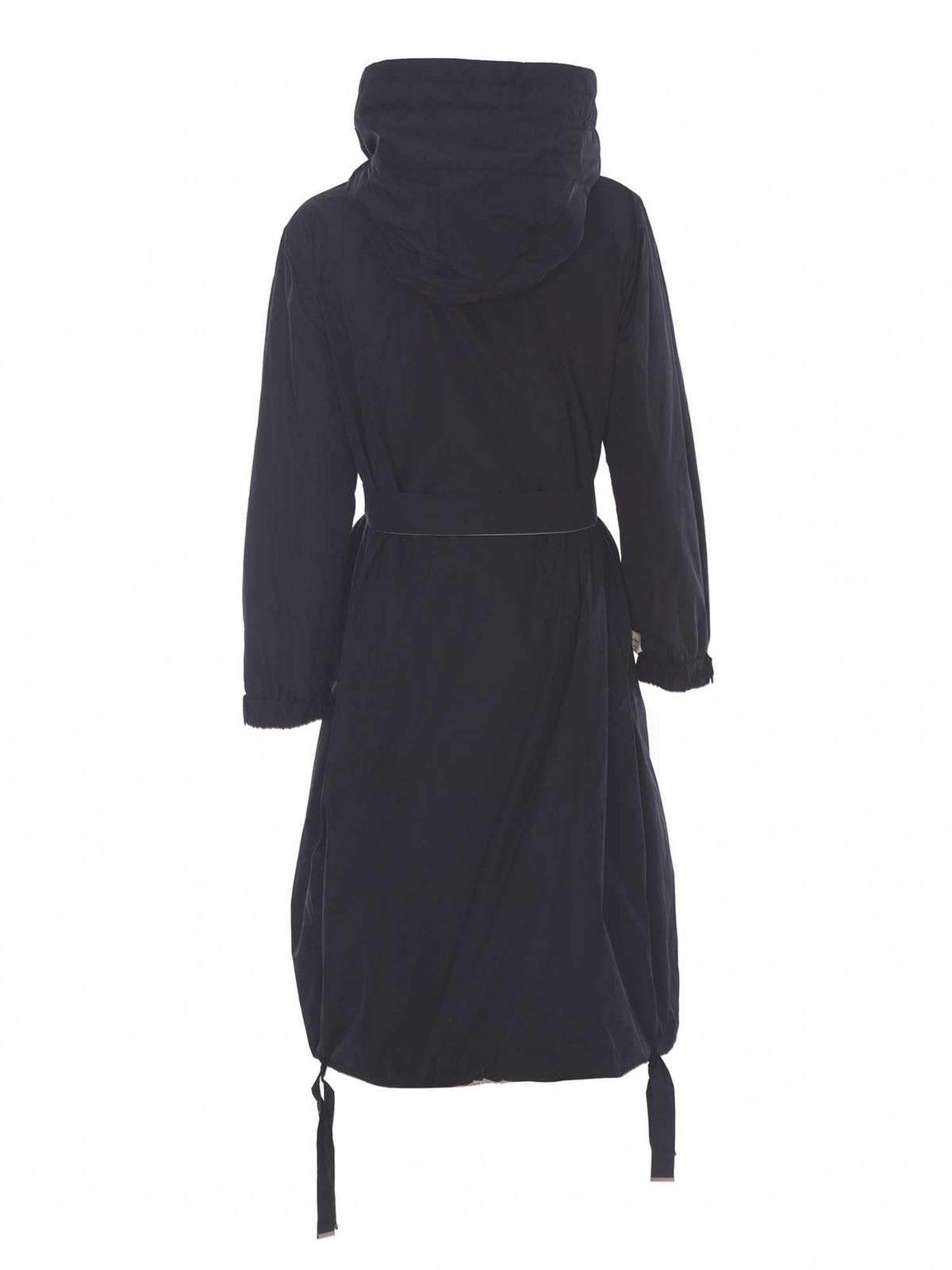 Reversible taffeta parka Color: blue Sand-color interior Hood and hem drawstring Removable belt Welt pockets Double slider zip fastening