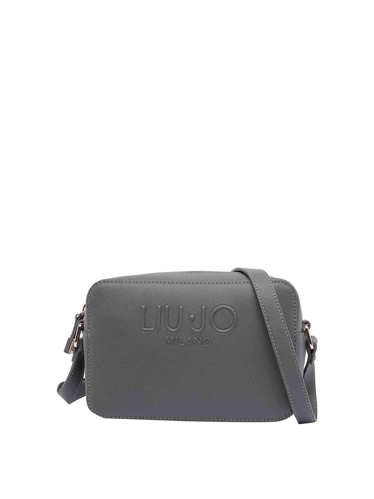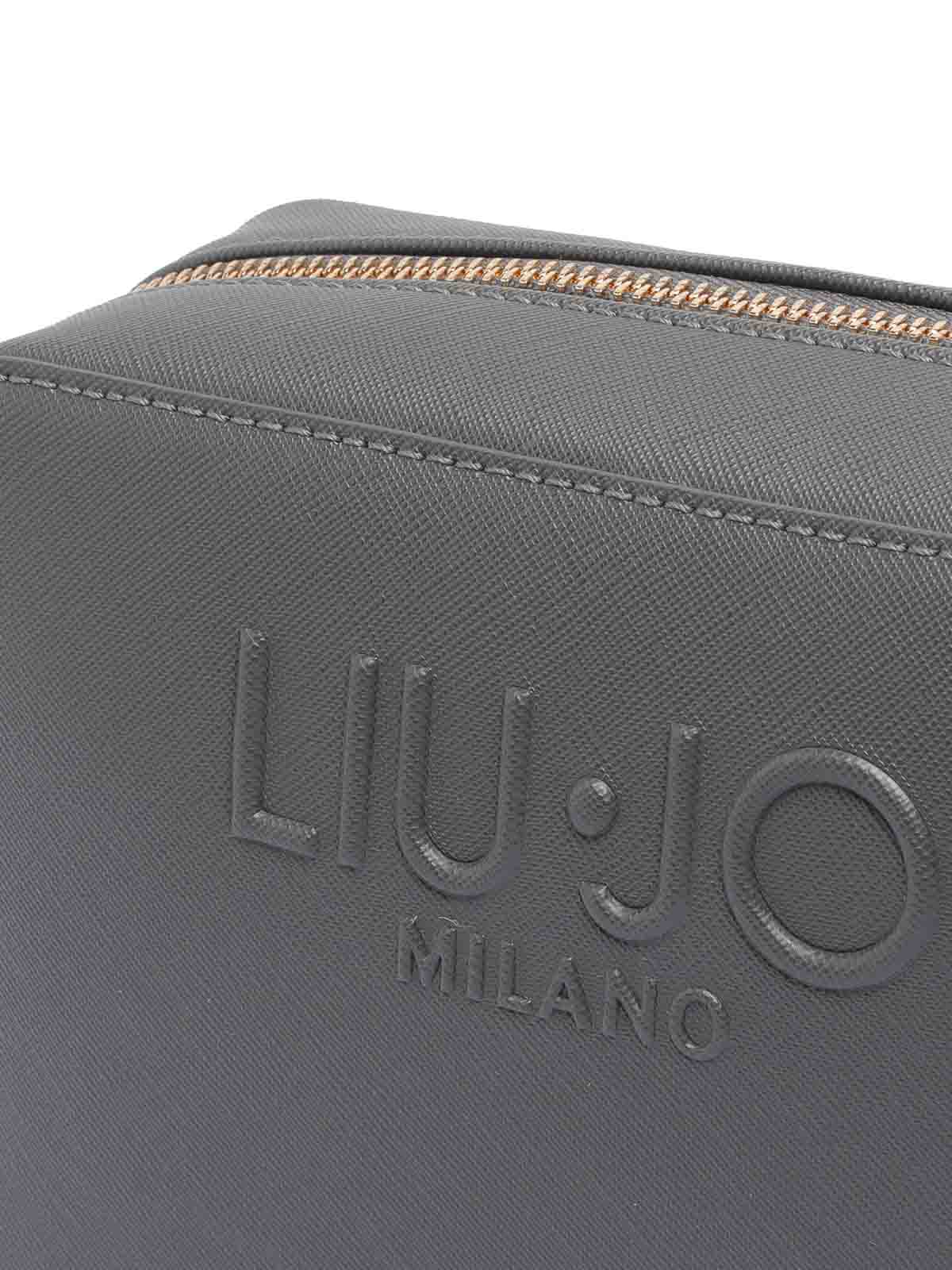 Liu jo dark grey logo camera bag zip open pocket adaptable strap frontal tone on tone logo