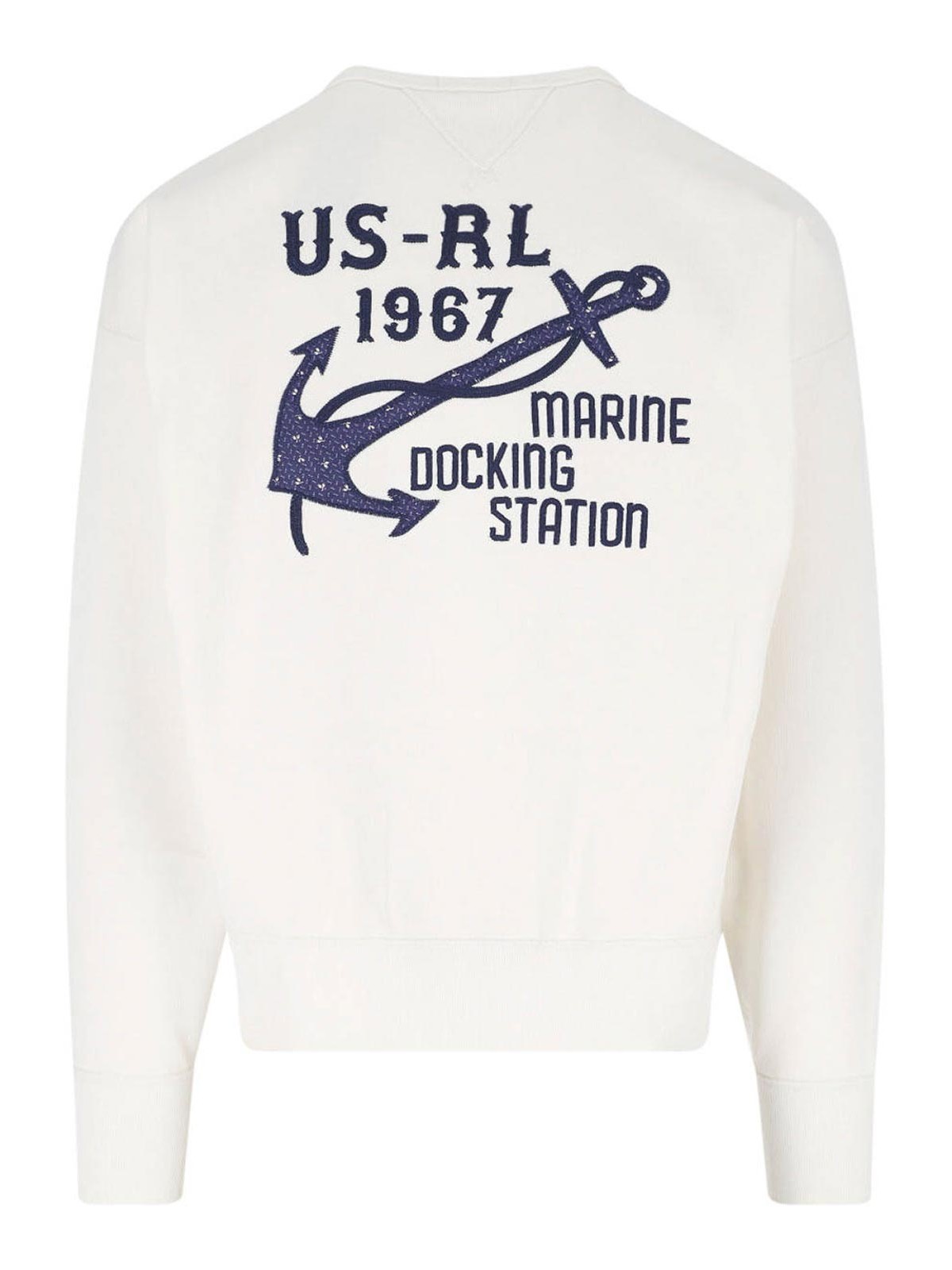 Rolph Lauren Polo Logo Sweatshirt Sweatshirt, in Mixed White Cotton, Blue Logo Blue Logo embroidery, Petto Patto, Logo print detail, Maxi Retro Blue Logo embroidery, Ciber Finishes, straight hem.