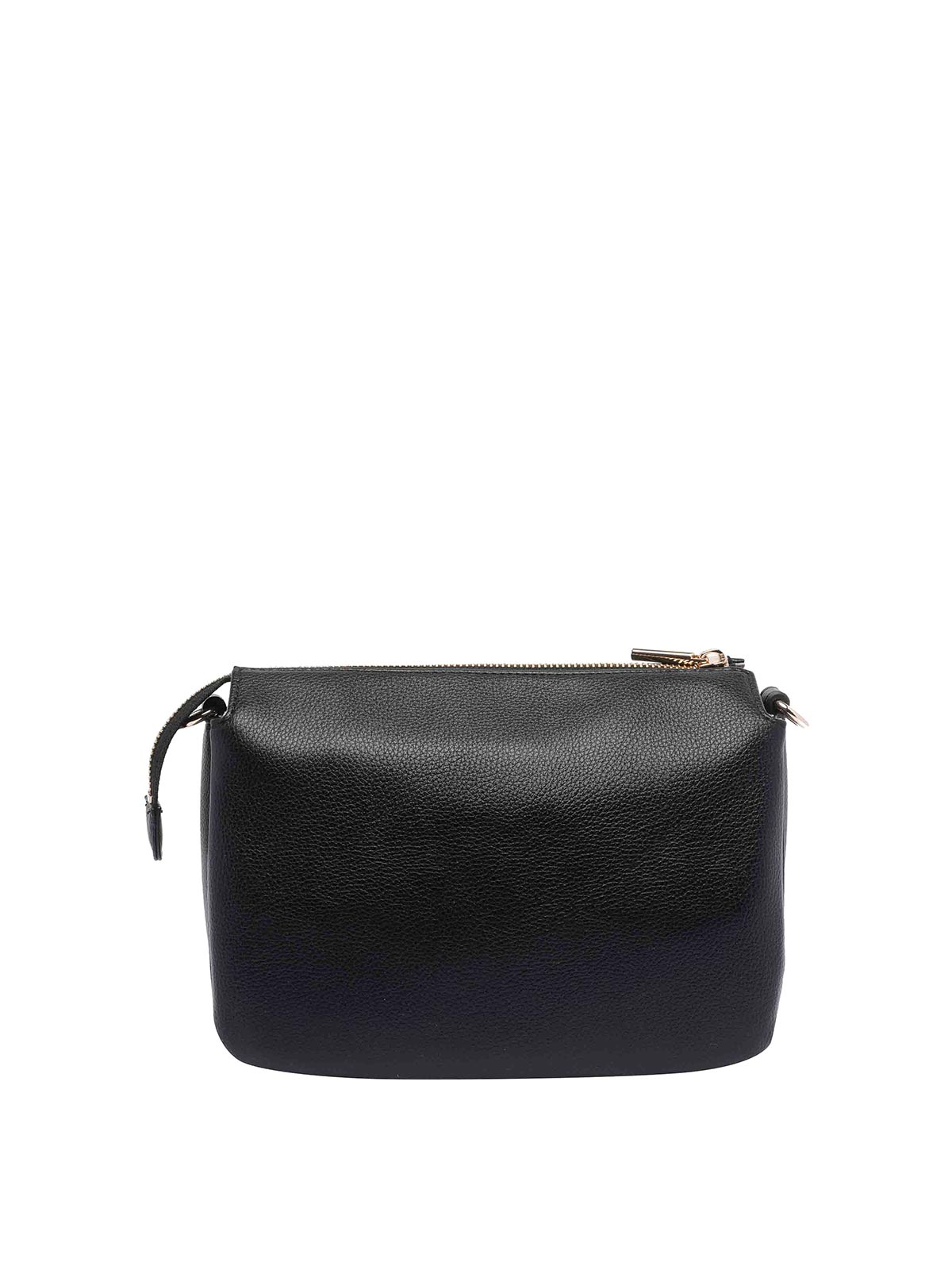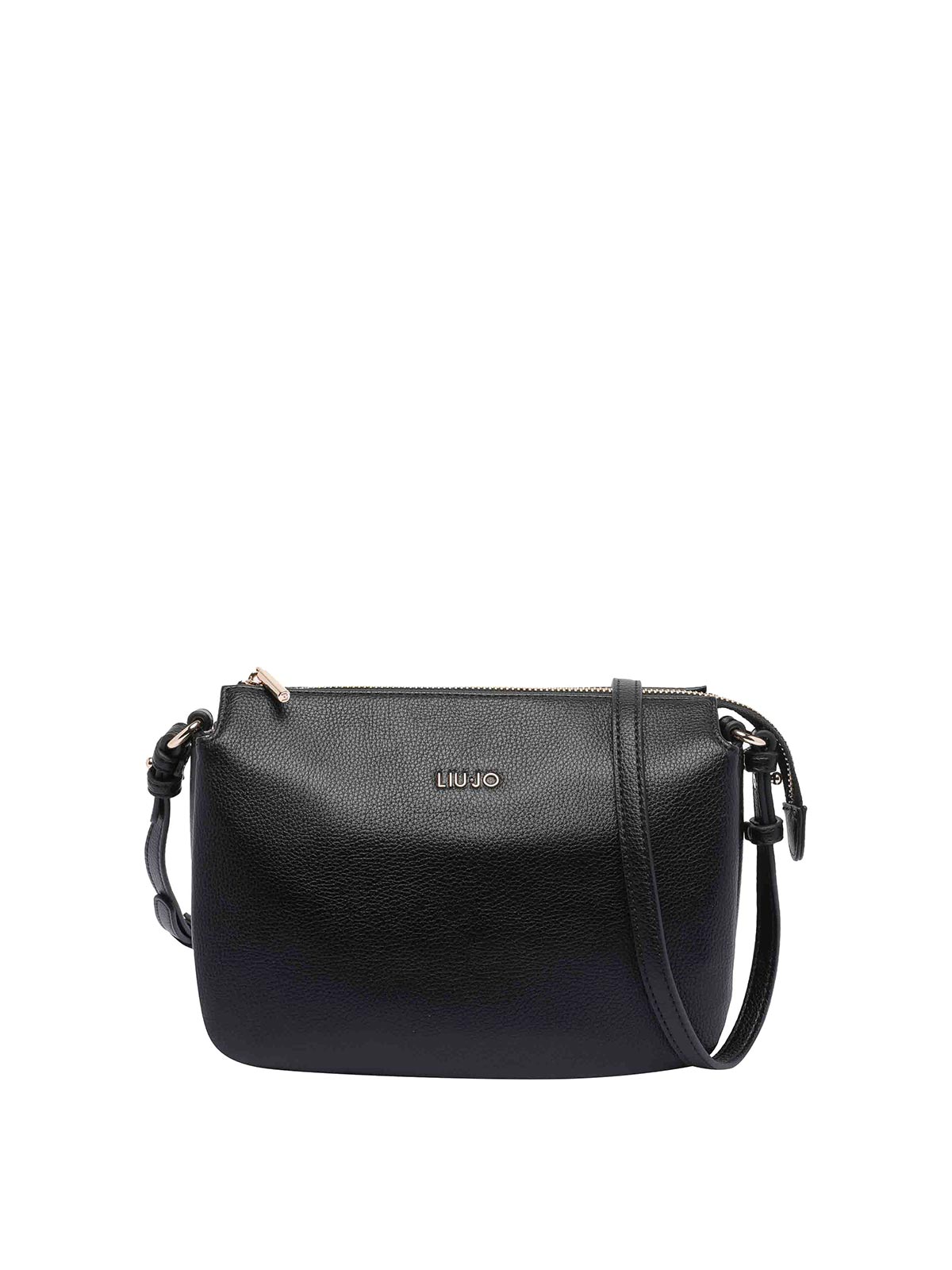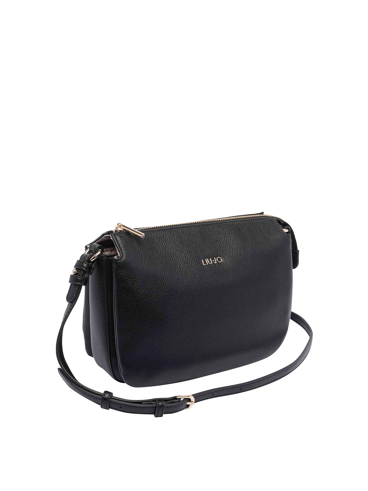 Liu jo black logo crossbody bag zip sections adaptable and removable strap frontal mini logo