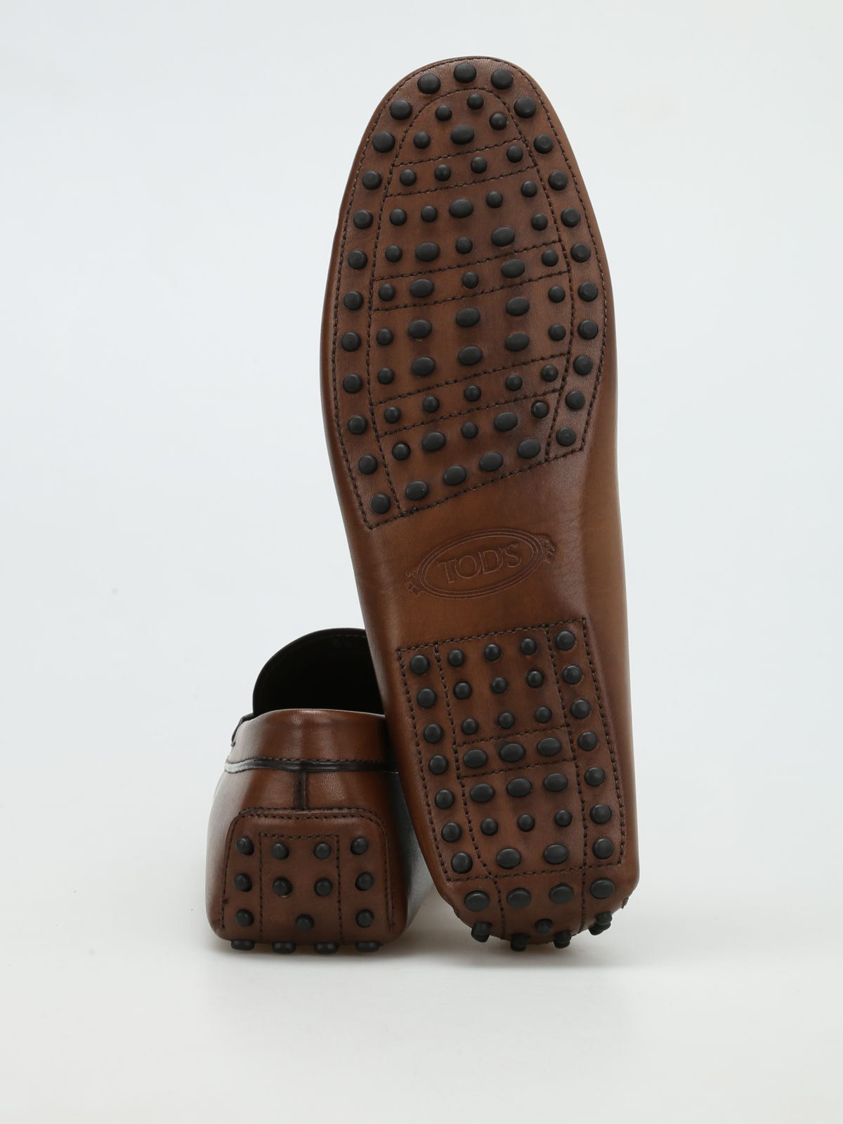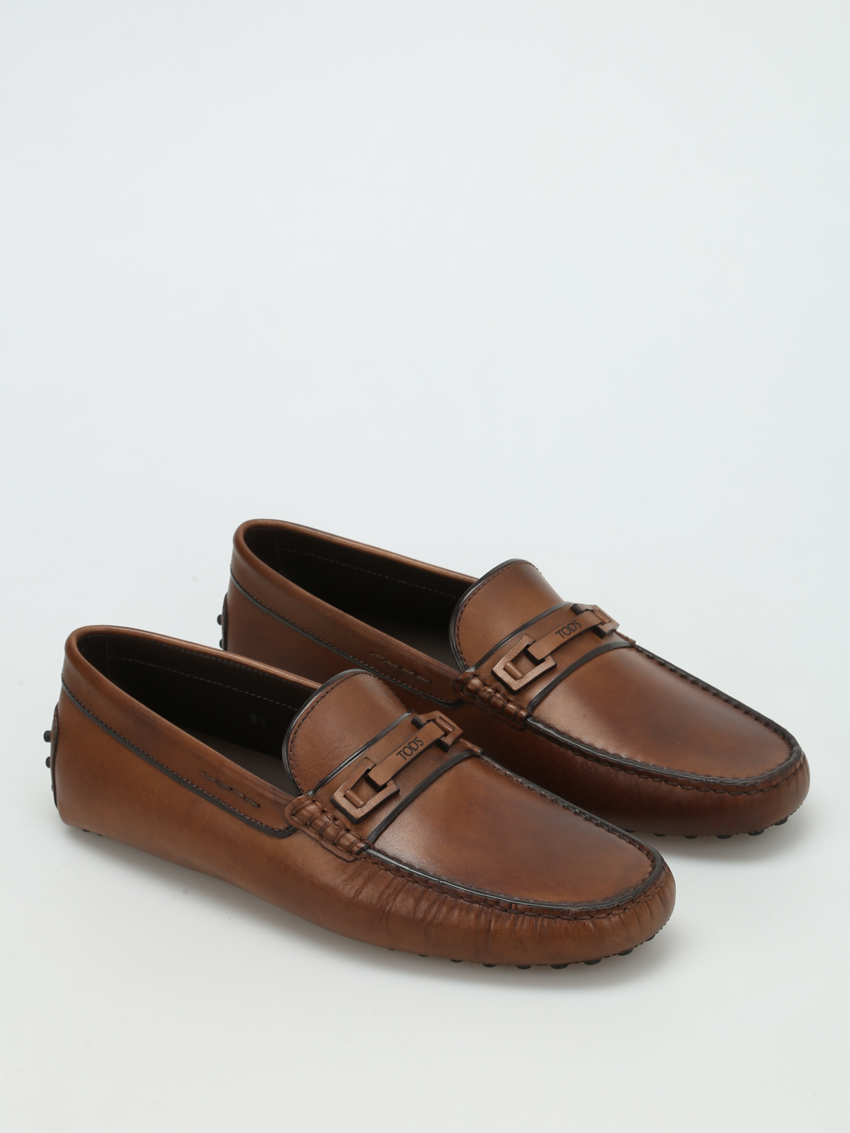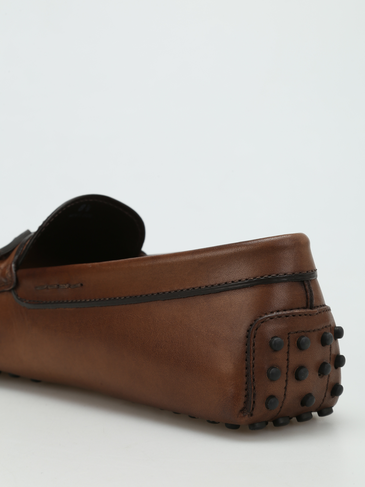 Vintage effect leather loafers featuring iconic logo Macro Clamp in leather, heel and leather sole with rubber pebbles.
