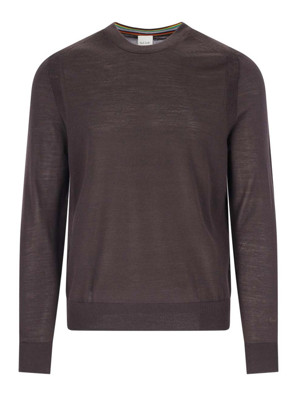 Brown paul smith basic sweater crew neck tone on tone logo ribbed trims straight hem