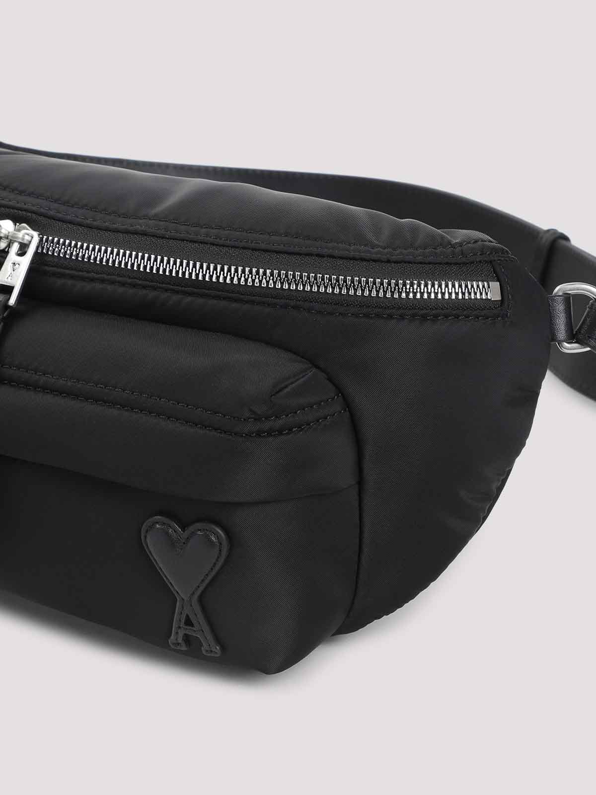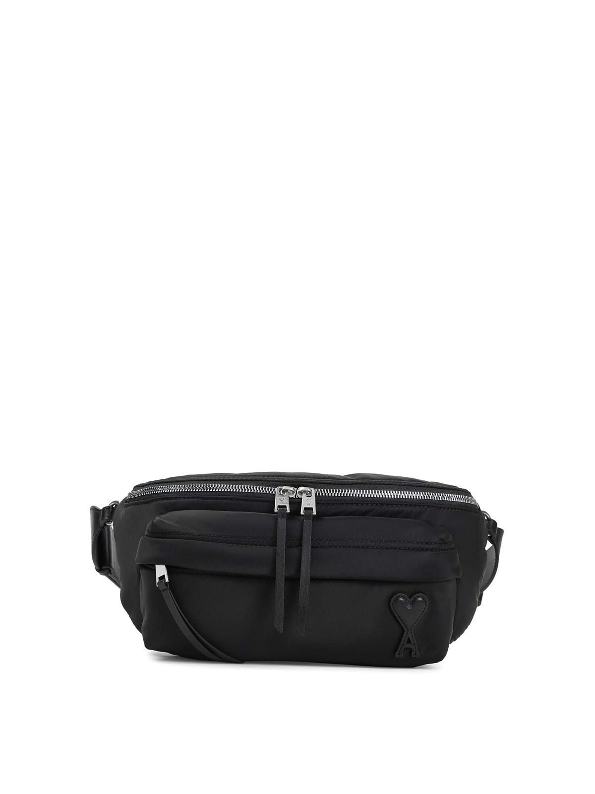 Ami marcel black bumbag crafted from black, toned hardware two, way zip on the pocket logo patch on the adjustable shoulder strap padded mesh pocket lined