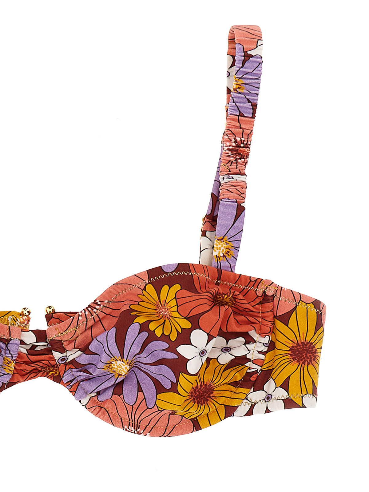 Marti' stretch bikin in a floral print stretch fabric balcony top with ferret adjustable elastic shoulders back hook closure leg bottoms with elasticated sides
