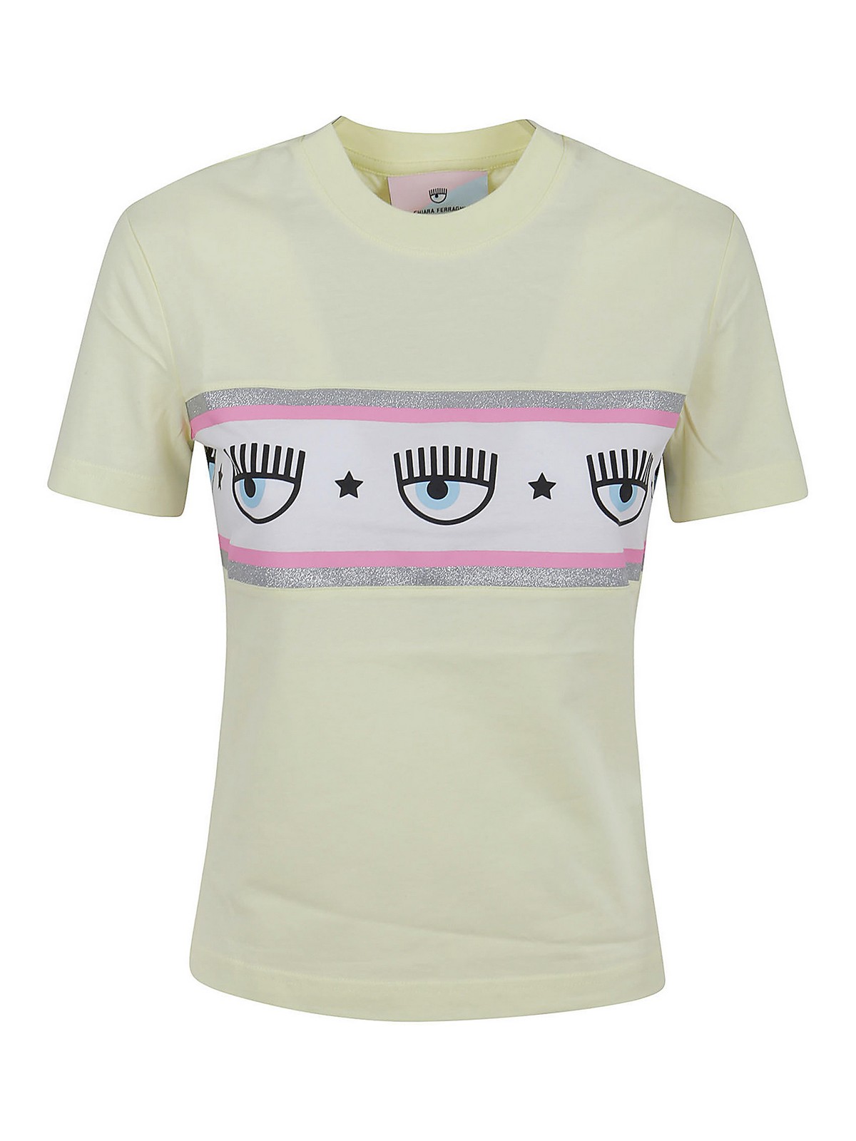Cotton T-shirt by chiara ferragni crew neck half sleeve design regular fit characterized by maxi logo print