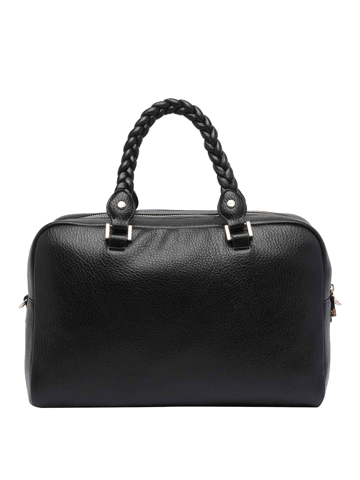 Liu jo black medium logo bowling bag zip sections handles adaptable and removable strap frontal logo