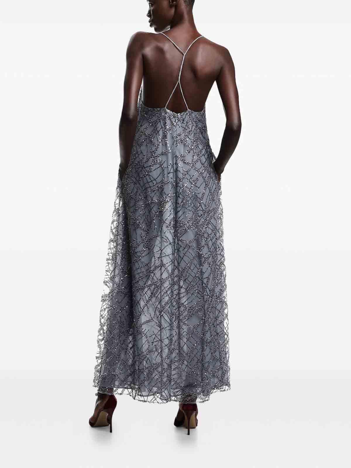 Grey sequin embellishment spaghetti straps open back a-line skirt