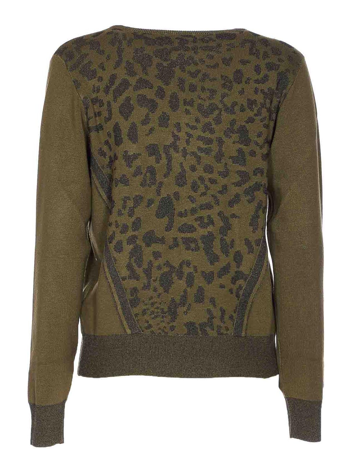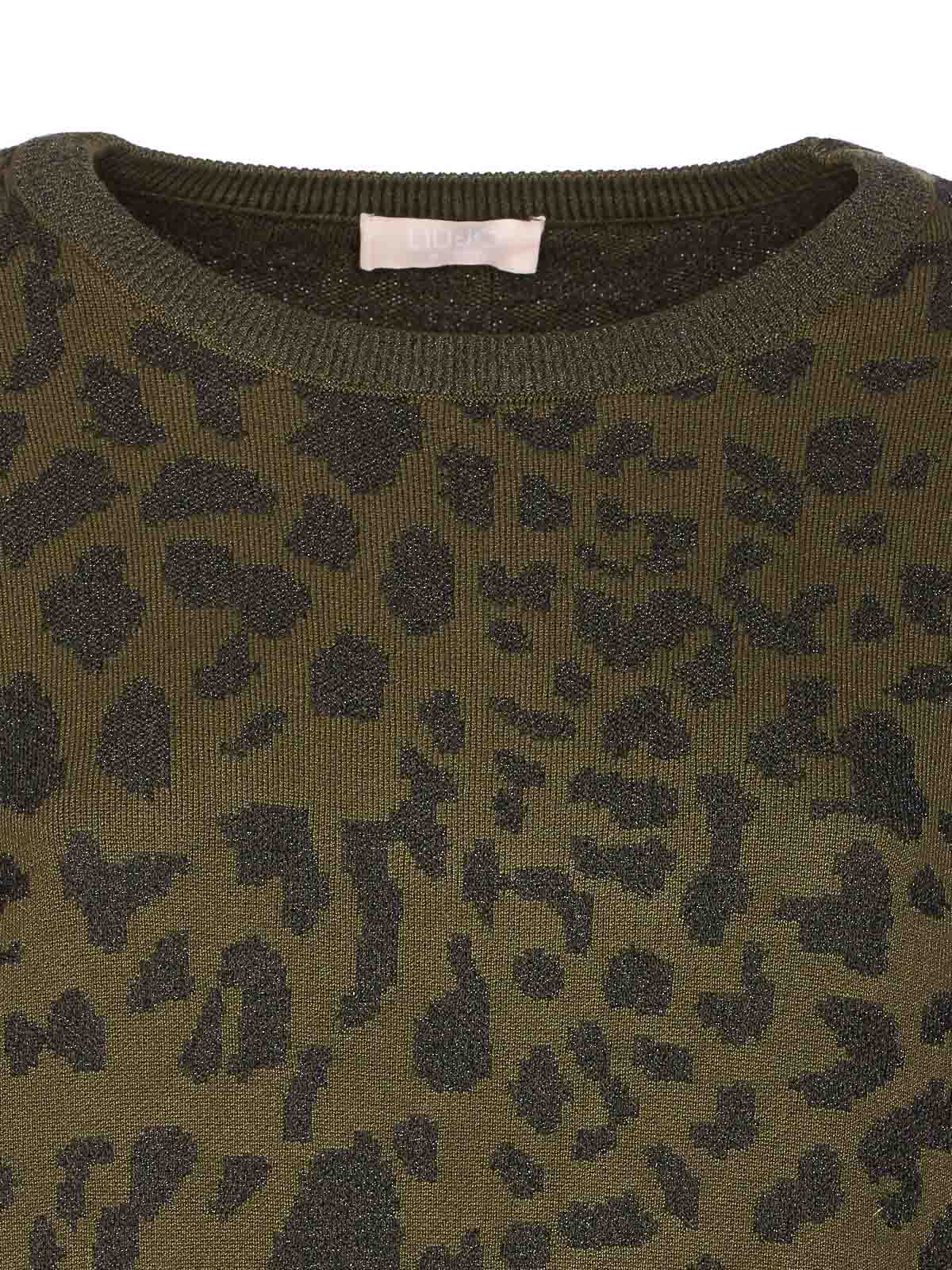 Liu jo military green sweater round neck long sleeves animalier print mini frontal logo