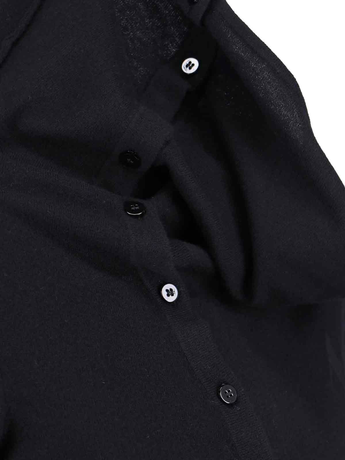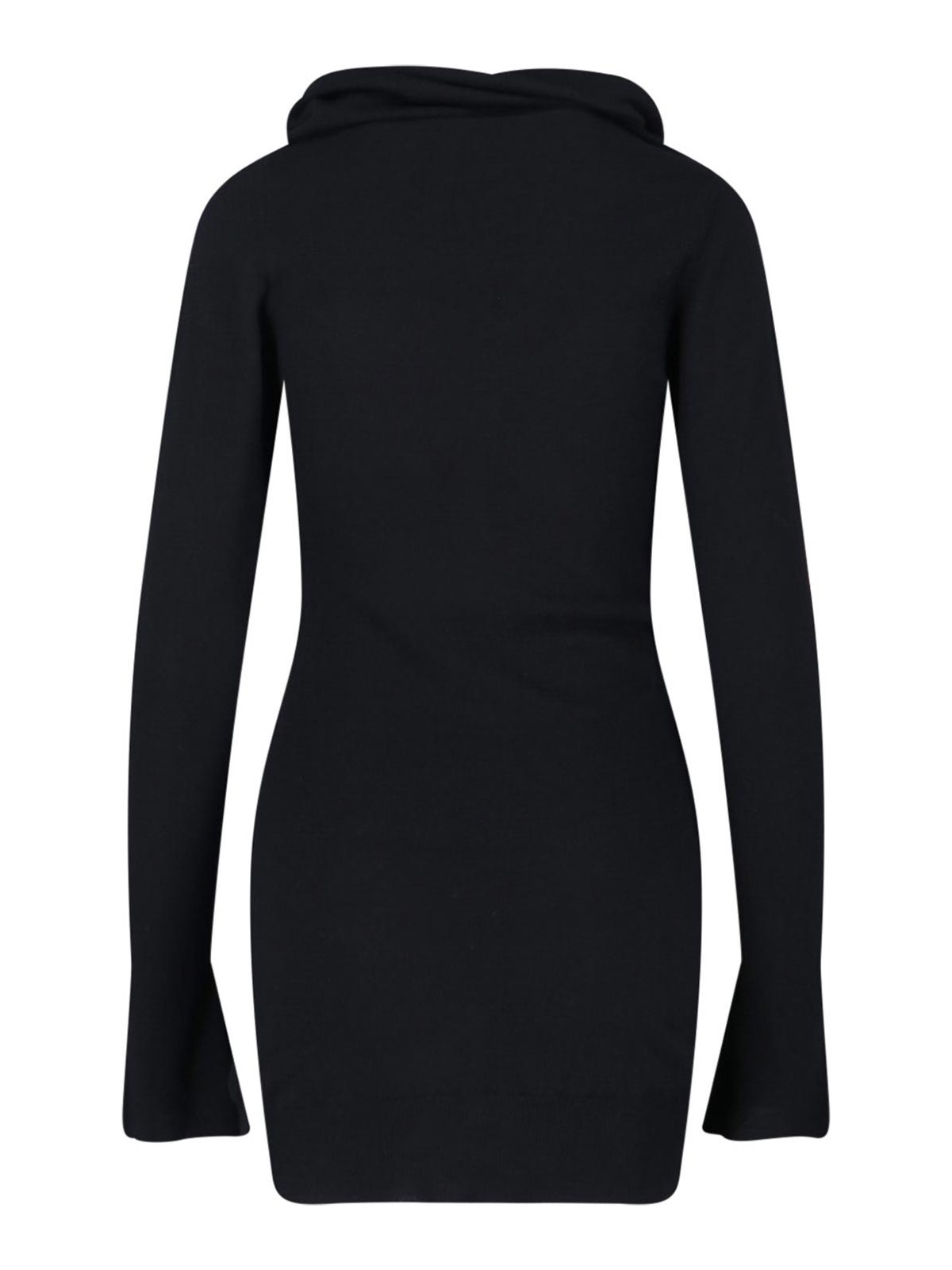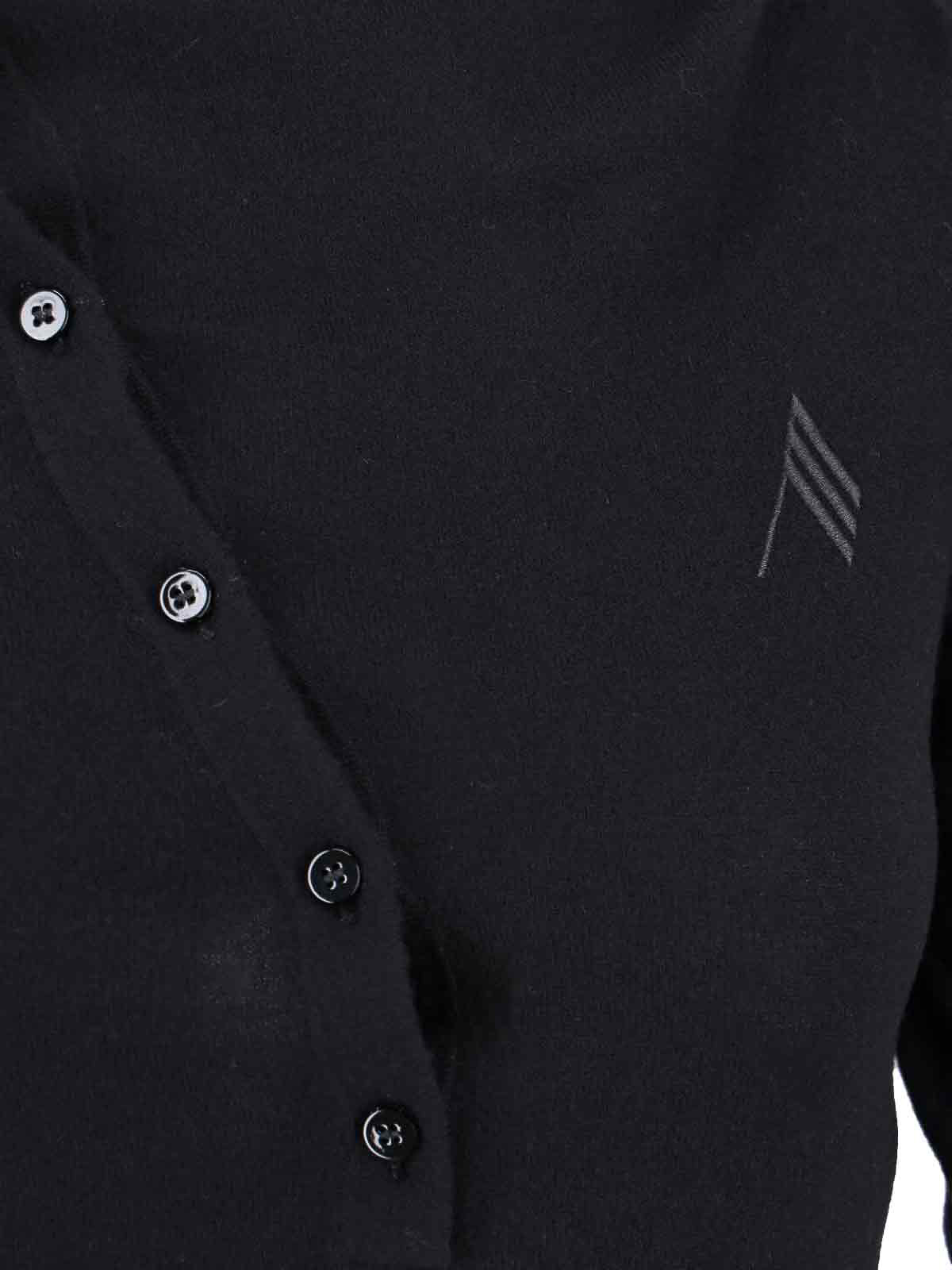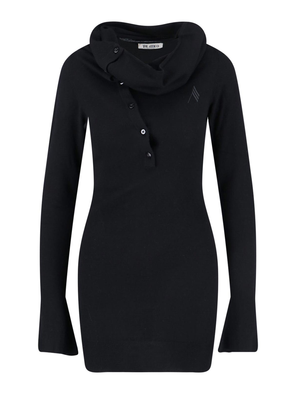 Mini Logo The Attic dress, in wool and black cashmere, asymmetrical collar, buttons closure, large sleeve detail on the sources, embroidery logo front, straight hem.