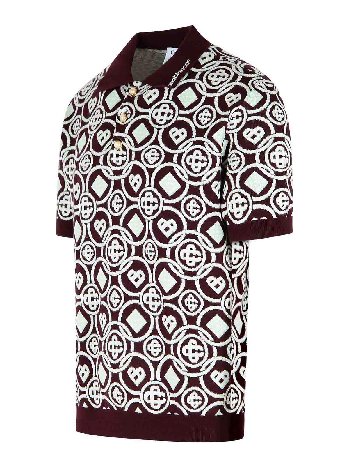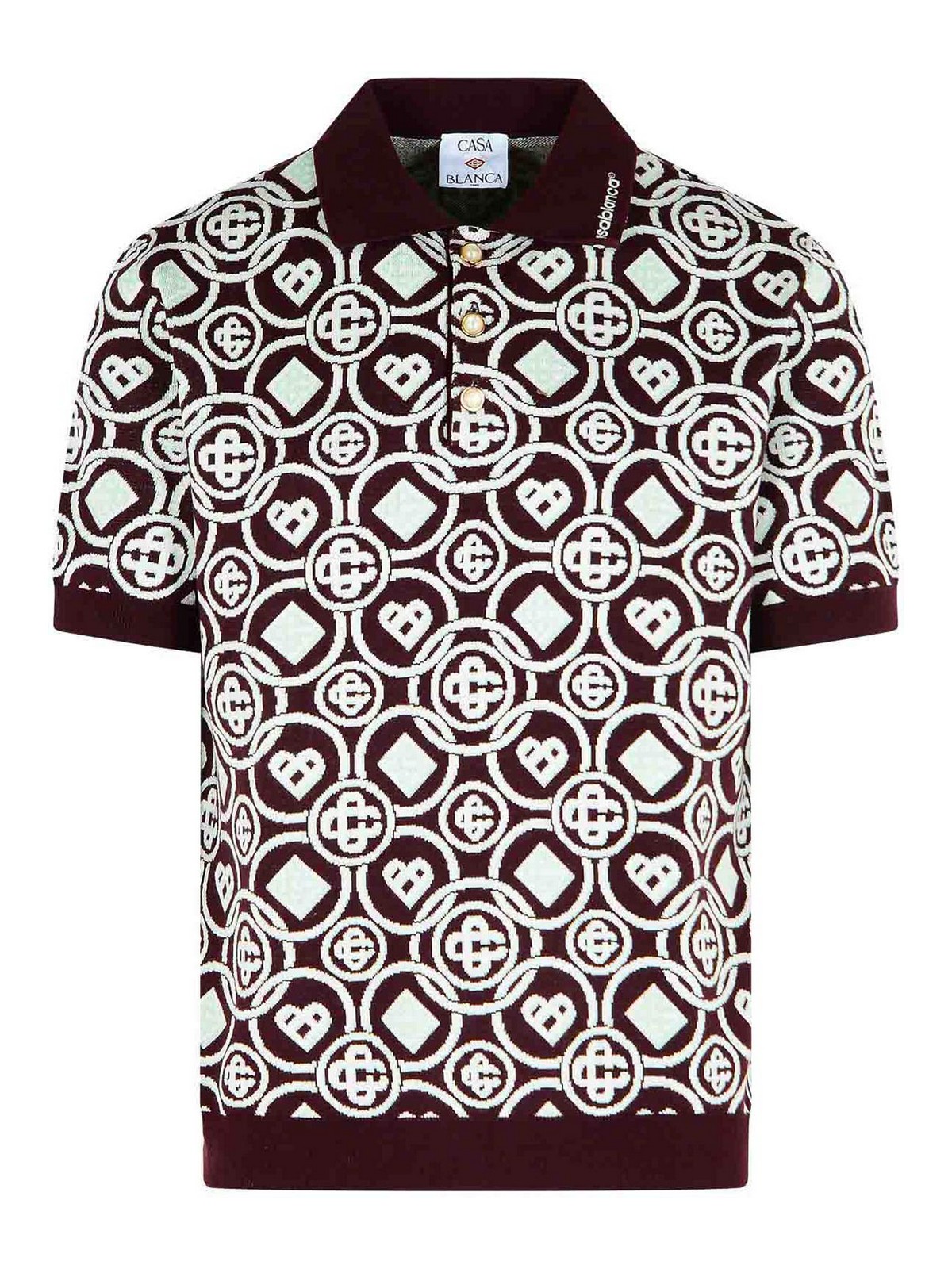 CASABLANCA: polo shirts - Monogram Burgundy Cotton Polo Shirt