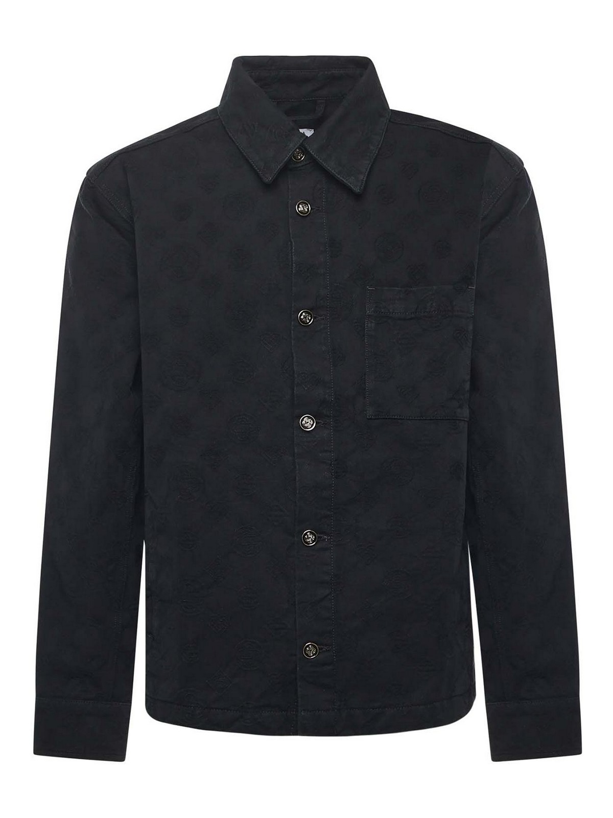 made of cotton denim, front button closure, applique chest pocket, regular fit, the size shown in the photo is l, color: black