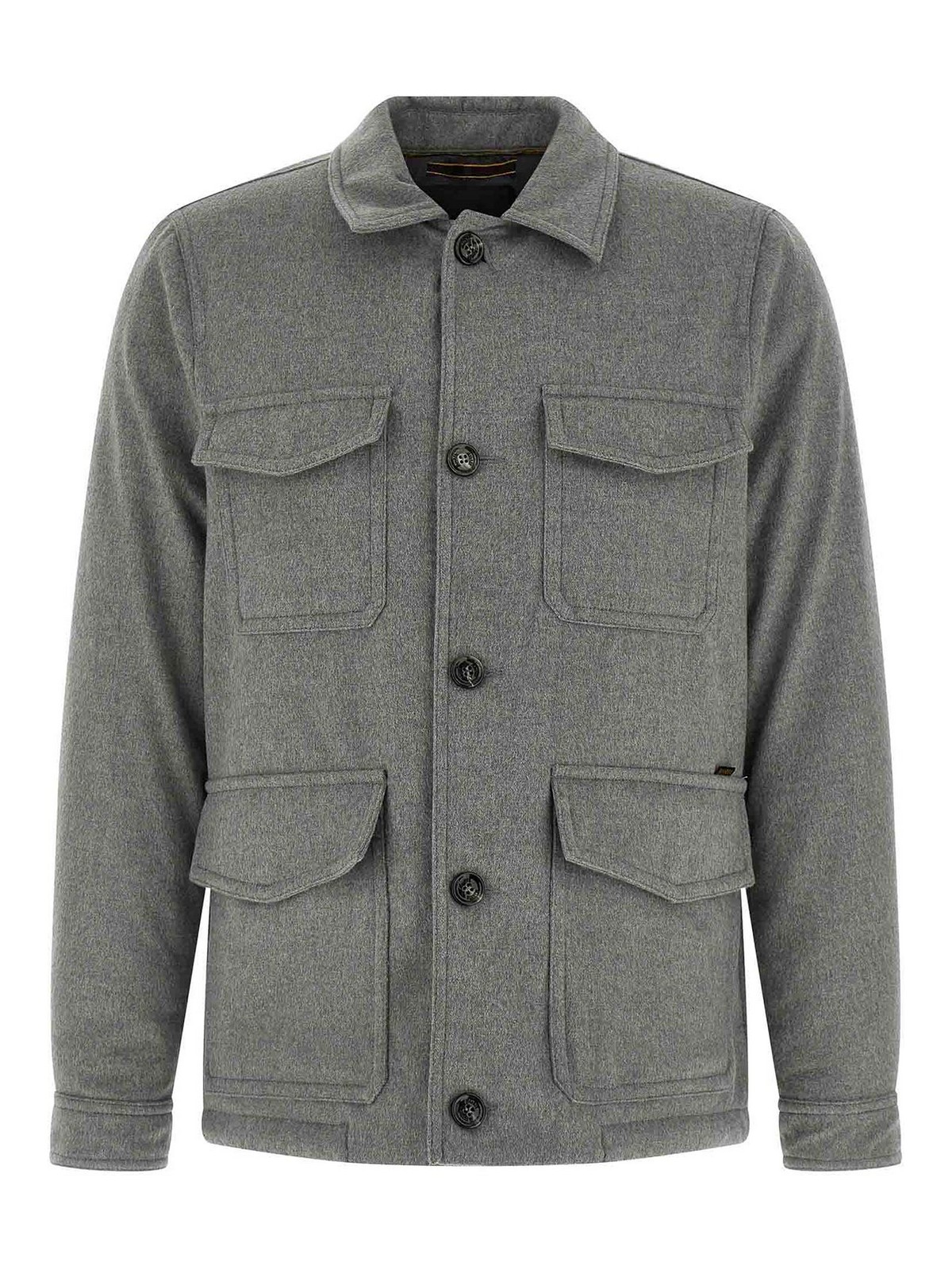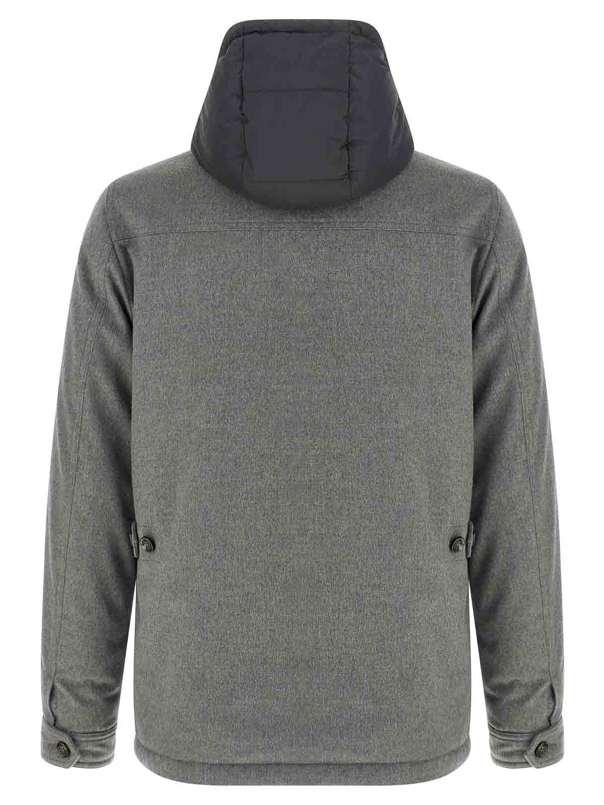 monti' wool and cashmere jacket, nylon lining and removable front with adjustable quilted hood, goose down padding, shirt collar, front zip and button closure, pockets, long sleeves.