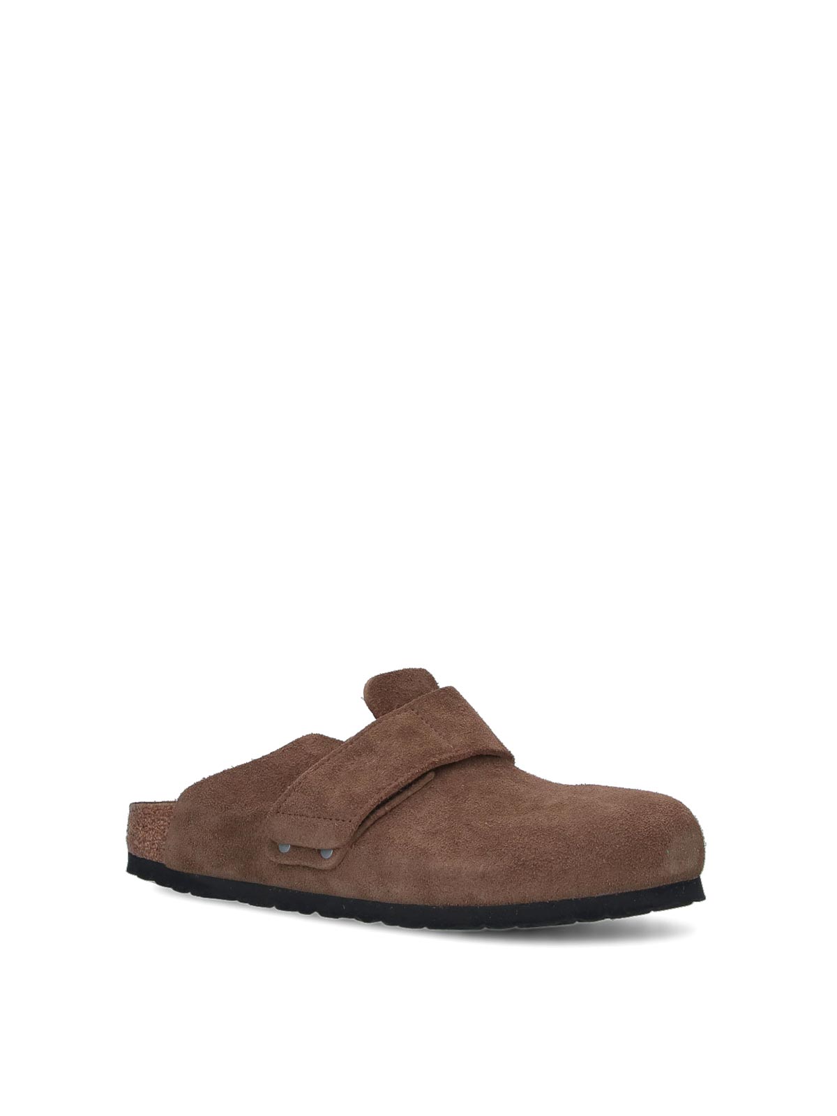 Birkenstock loma mules in brown suede, round toe, upper band, EVA sole.