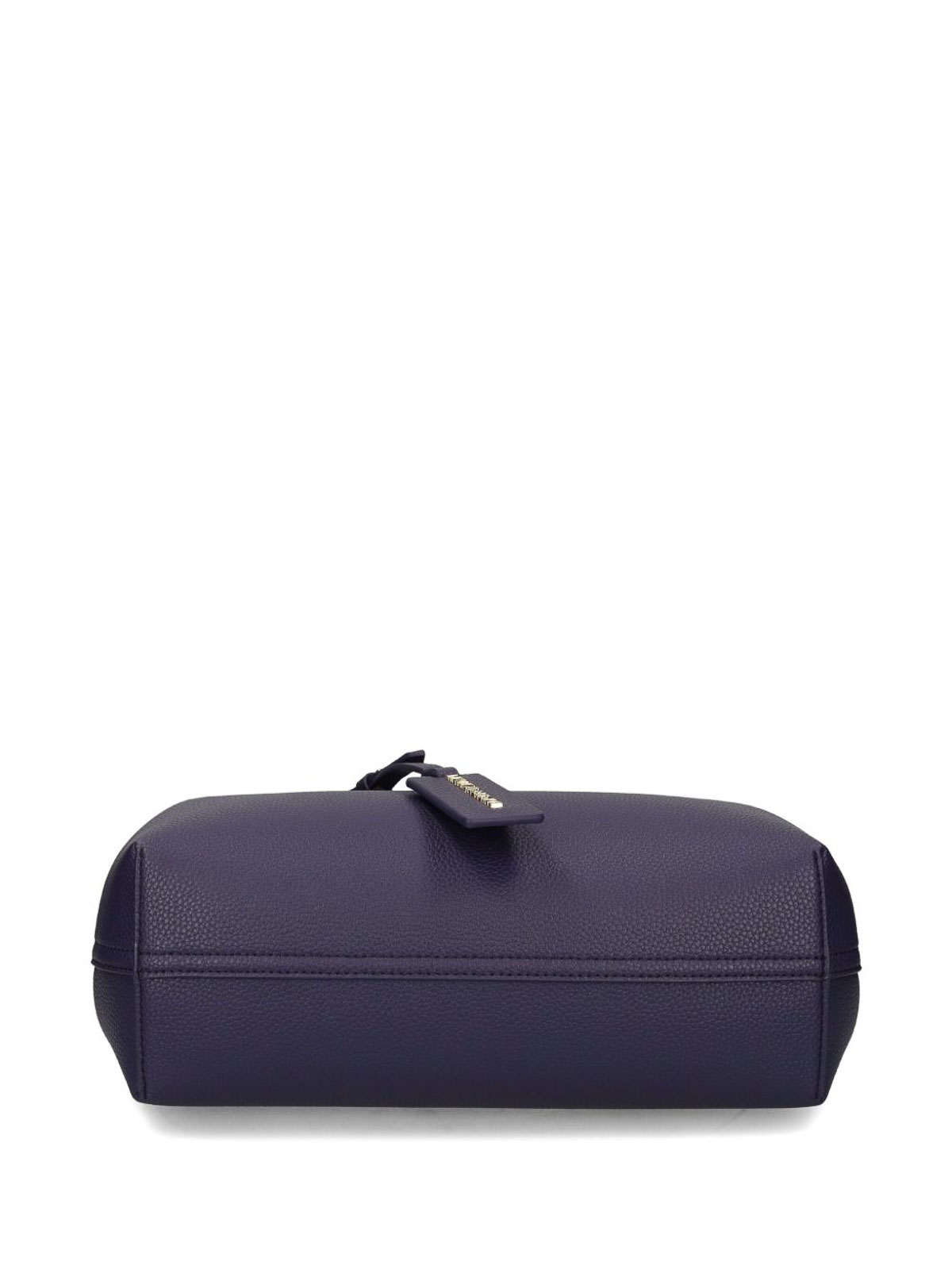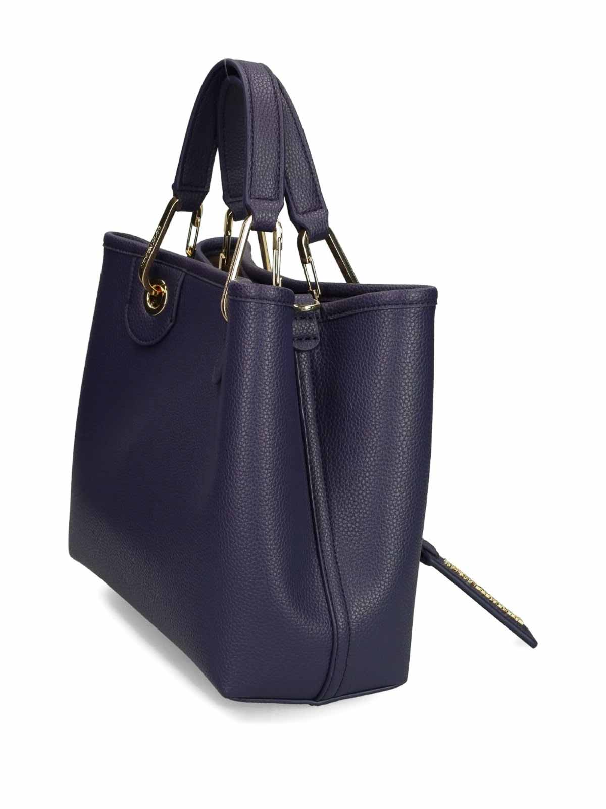 Dark-blue gold-tone hardware double handles detachable shoulder strap embossed logo small internal pouch