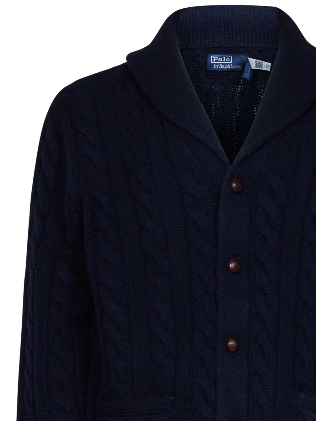 POLO RALPH LAUREN: cardigans - Navy Blue Cable-Knit Wool & Cashmere Cardigan