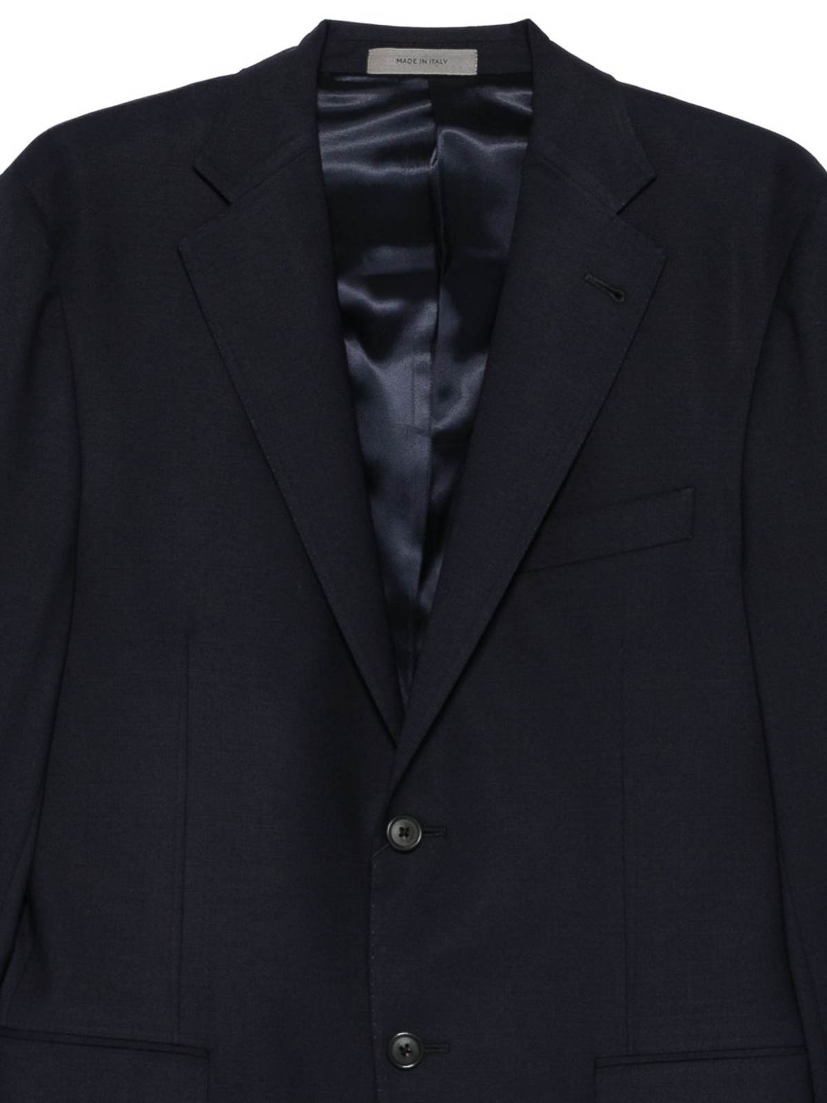 Navy blue jacket by corneliani featuring lapels button flap pockets and long sleeves a sophisticated and timeless piece ideal for both formal and smart-casual looks