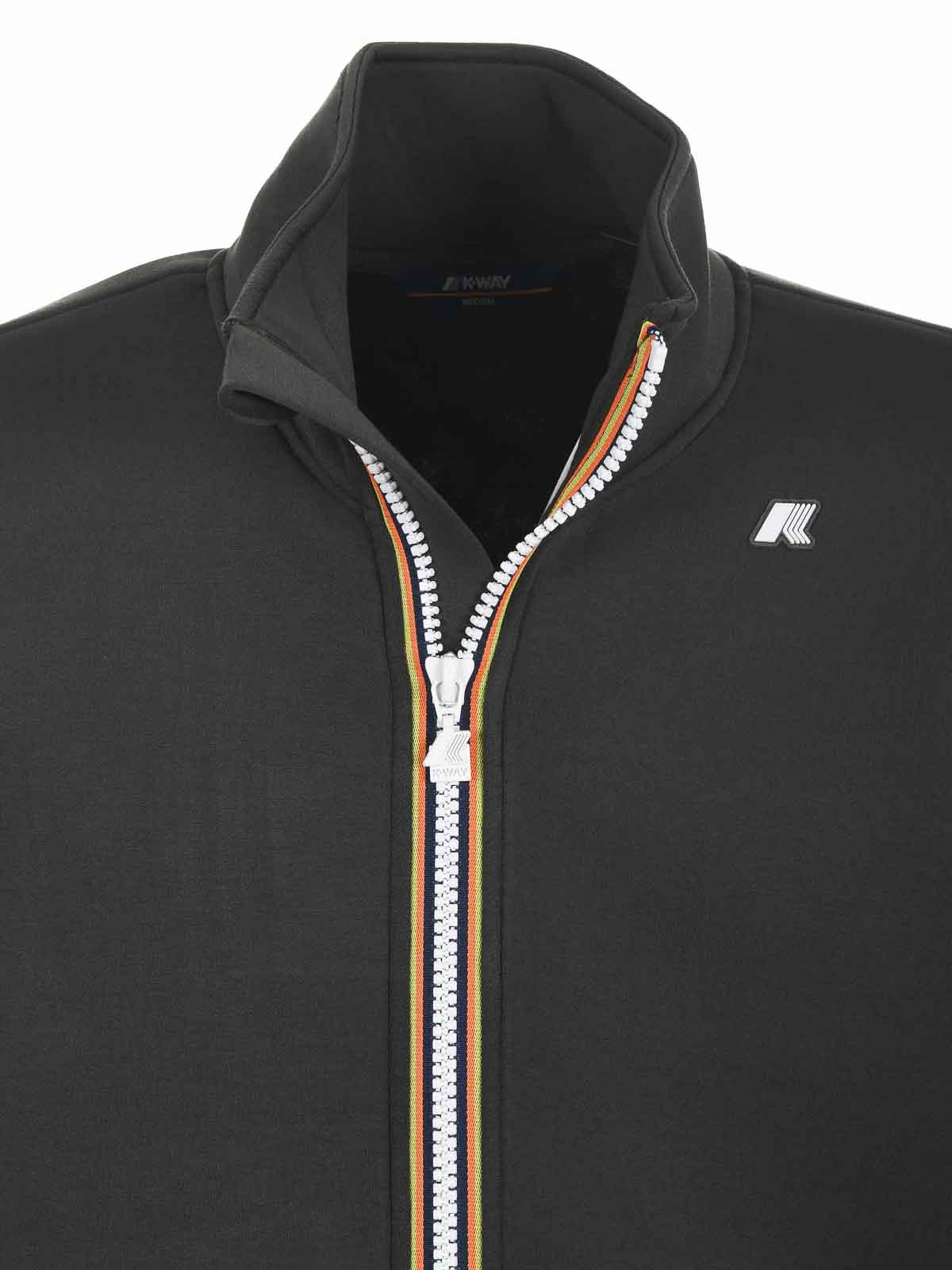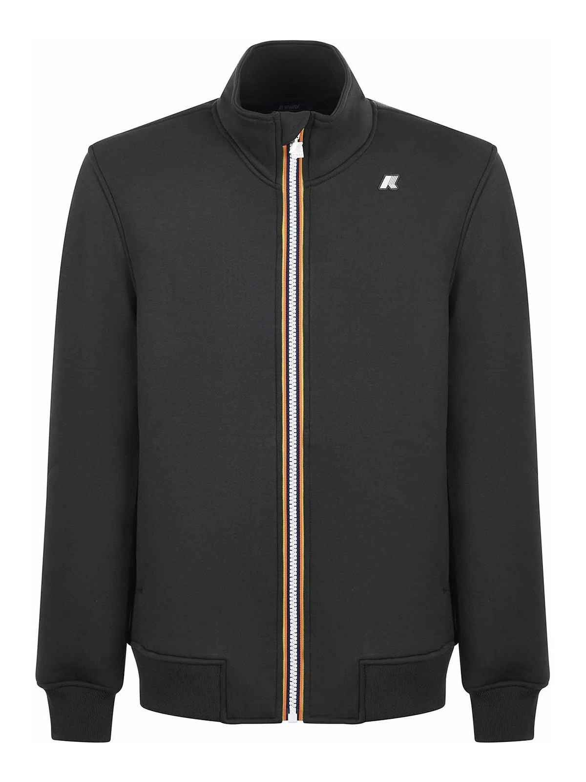K-way neoprene sweatshirt. zip closure with colorful details. high neck. welt pockets. rubberized logo on the chest. ribbed cuffs and hem. size m in photo 79% polyester, 12% viscose, 9% elastane