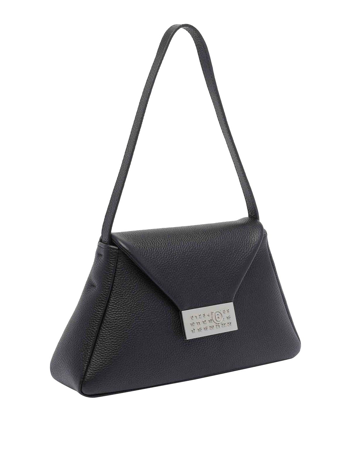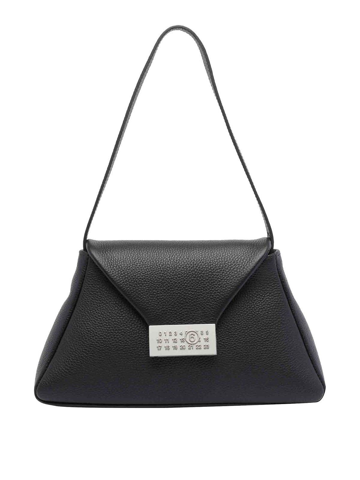 Mm6 maison margiela black numeric shoulder bag. magnetic closure, inner open pocket, adaptable strap, leather model