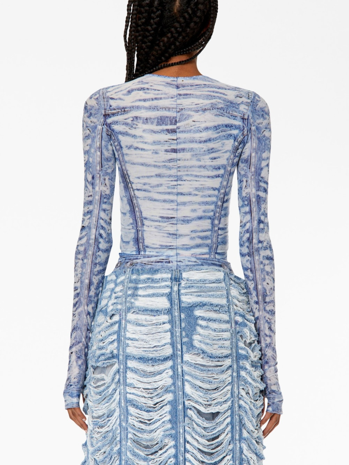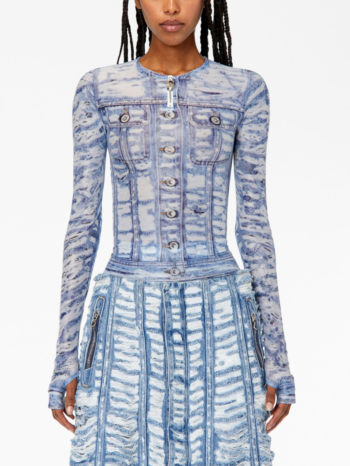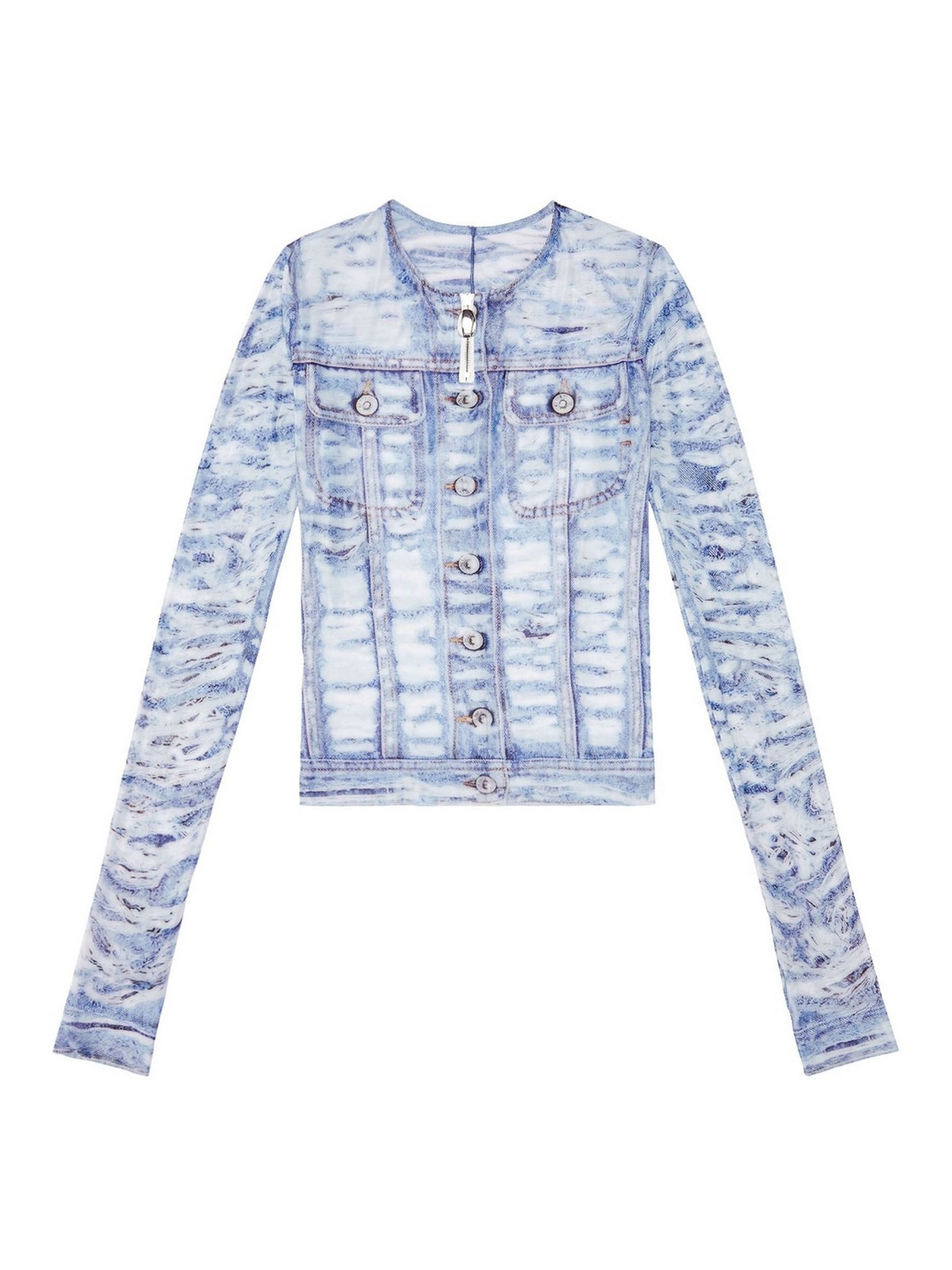 T-clauzi tie-dye print t-shirt from diesel featuring half front zip fastening, medium blue, tie-dye shirt print, round neck, long sleeves and straight hem.
