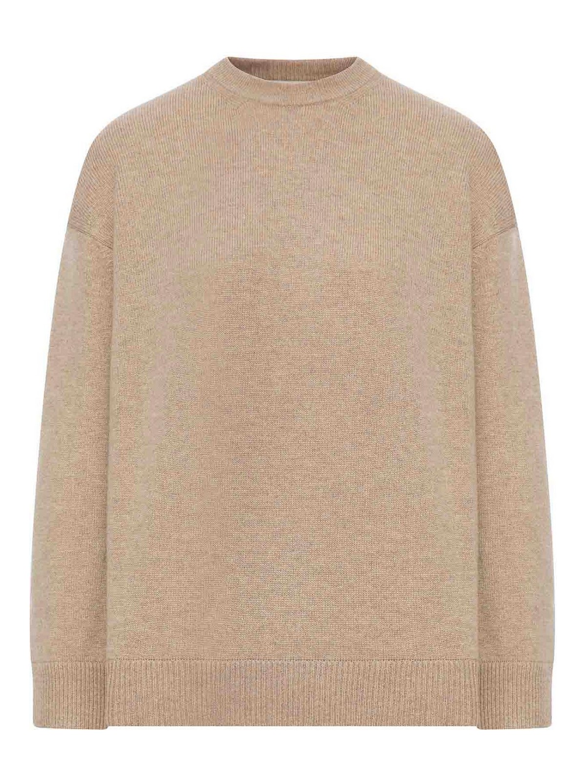 Ribbed crew neck- dropped shoulders- long sleeves- ribbed cuffs and hem- straight hem- oversized fi- color beige