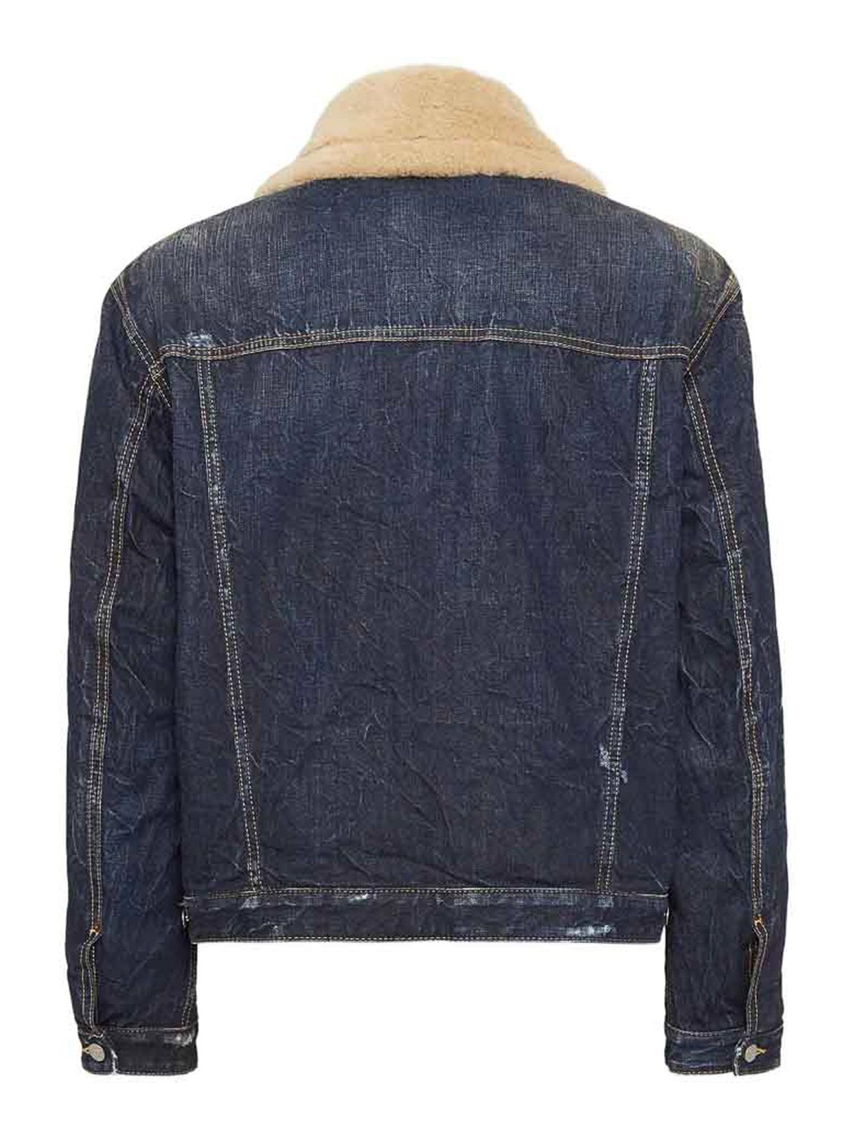 Navy blue front button fastening two button-fastening chest pockets two side inset pockets contrasting collar