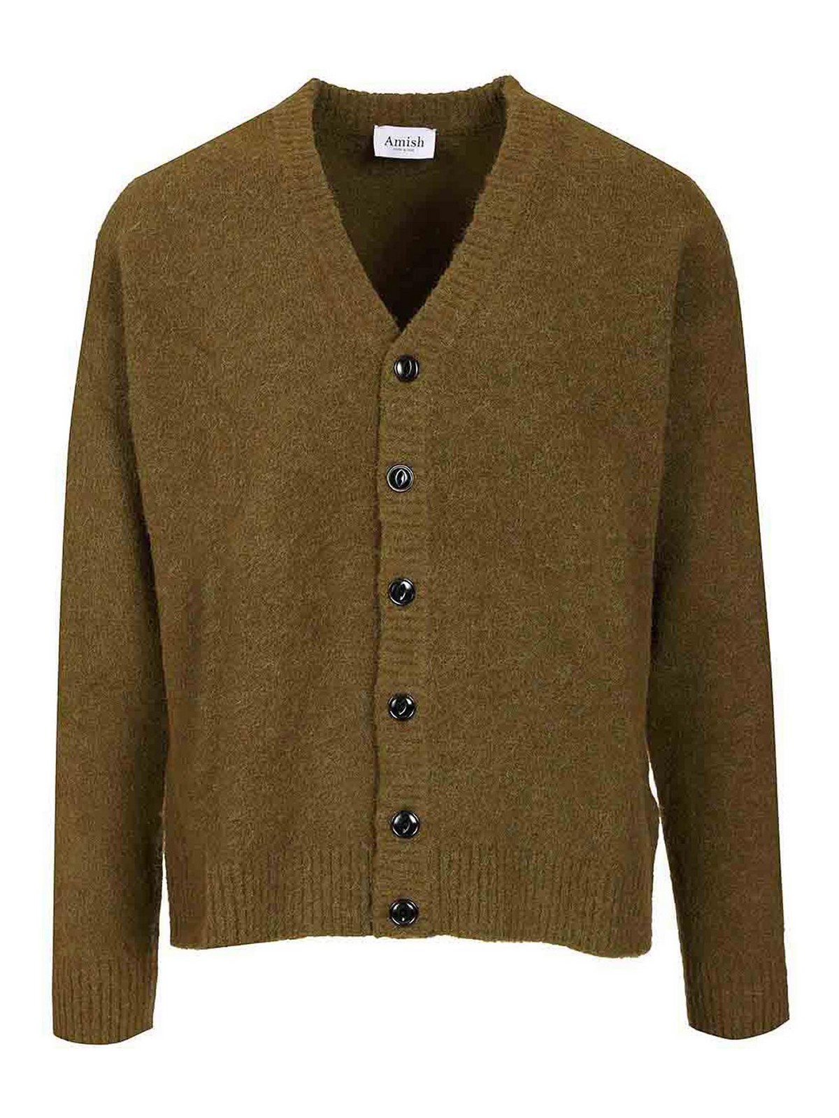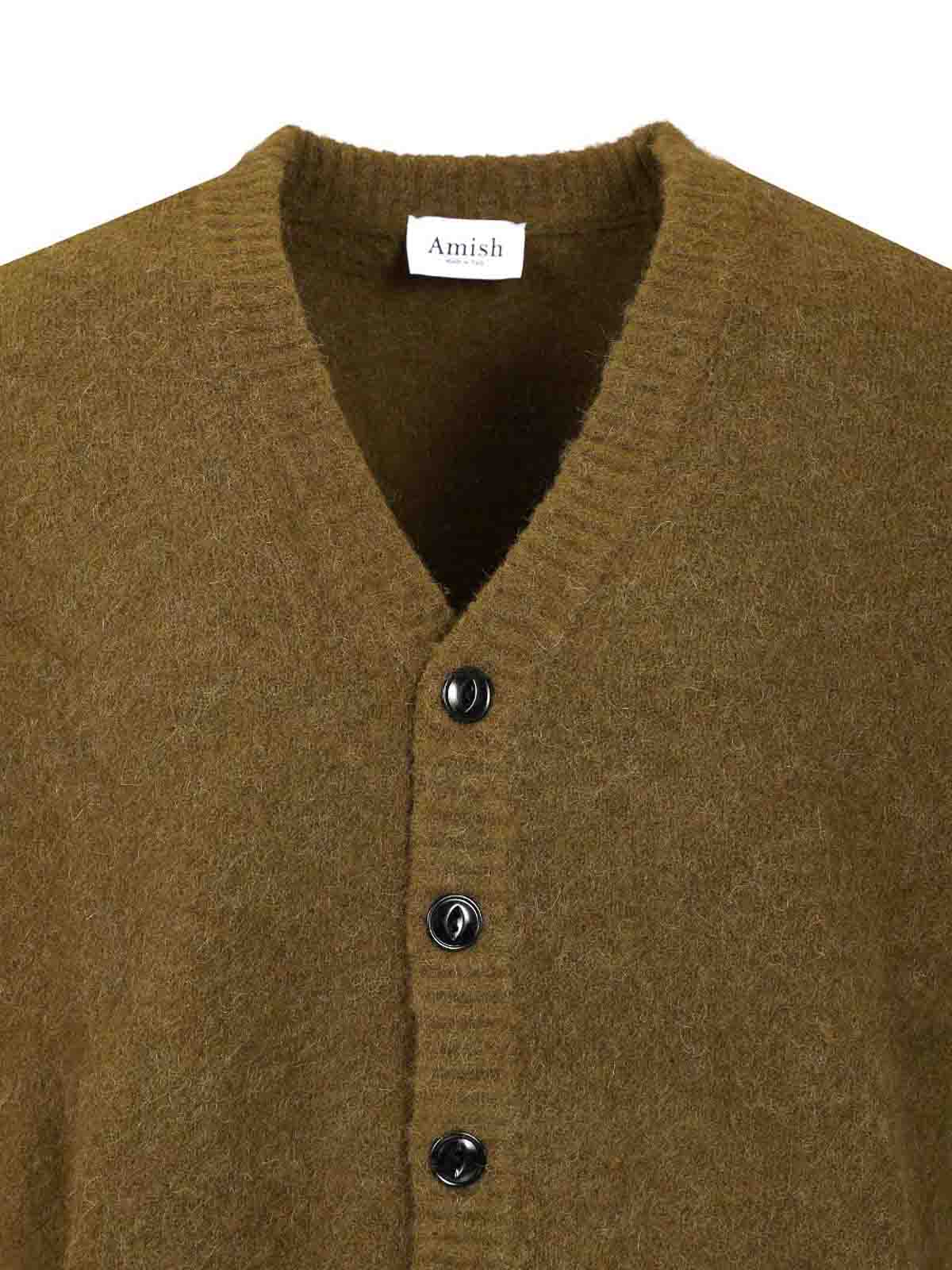 Amish oversized cardigan in a and blend with a v, neck button and ribbed trims