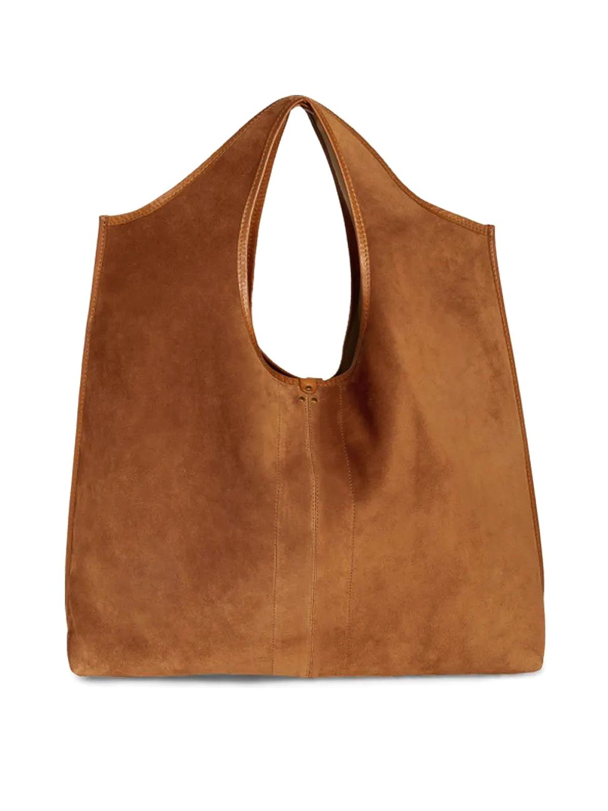 Camel brown, two top handles, main compartment, slouch body