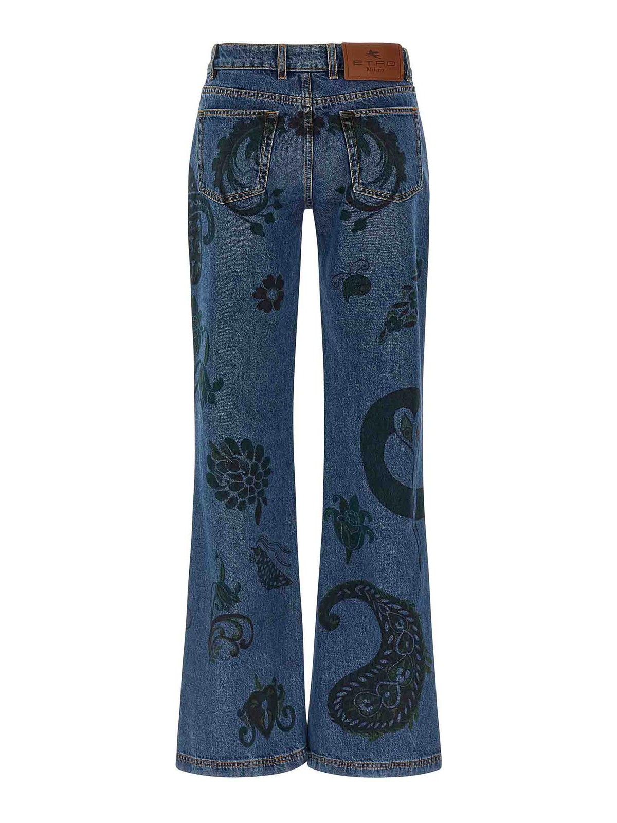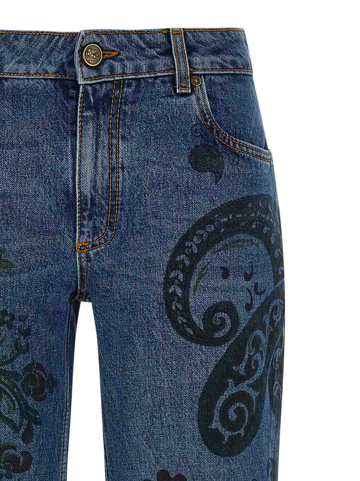 Cotton denim jeans with all, over paisley print mid waist with slightly flared leg five pockets zip and button back logo tag