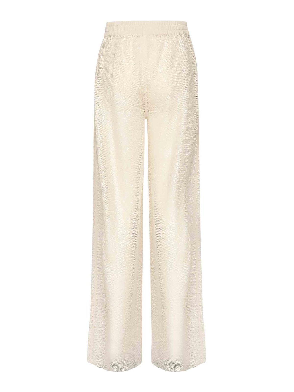 Worked in a mesh with sequins, wide leg, regular elasticated waist, the size shown in the photo is s, color light beige