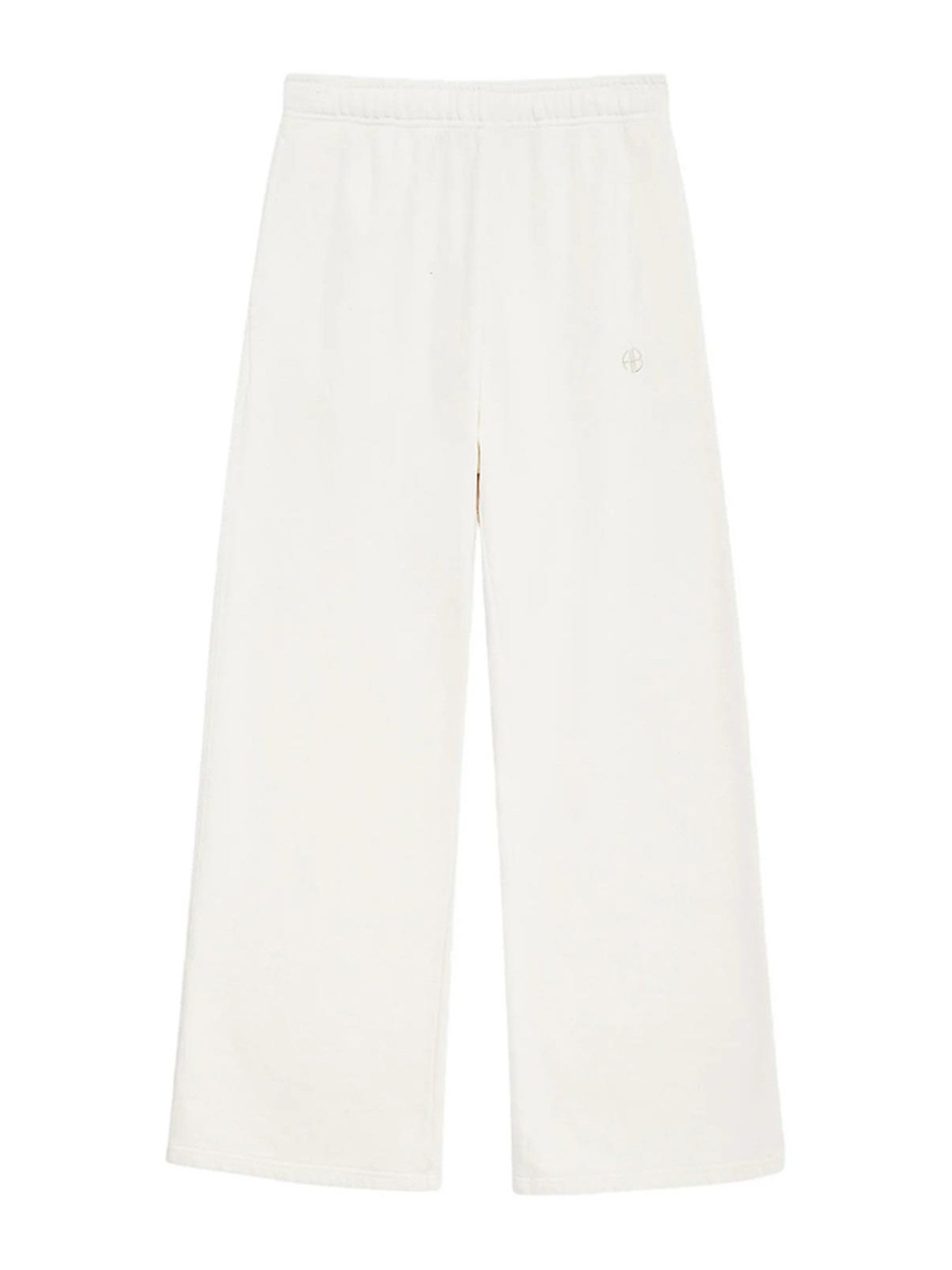 Cream elasticated waistband wide-leg fit embroidered detail