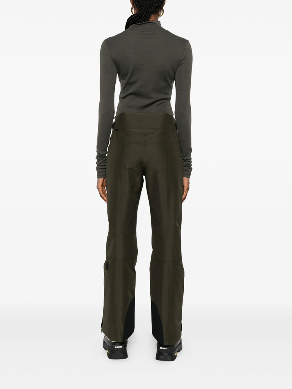 Dark olive panelled design water-resistant zip snap-button heat-sealed seams gore-tex membrane