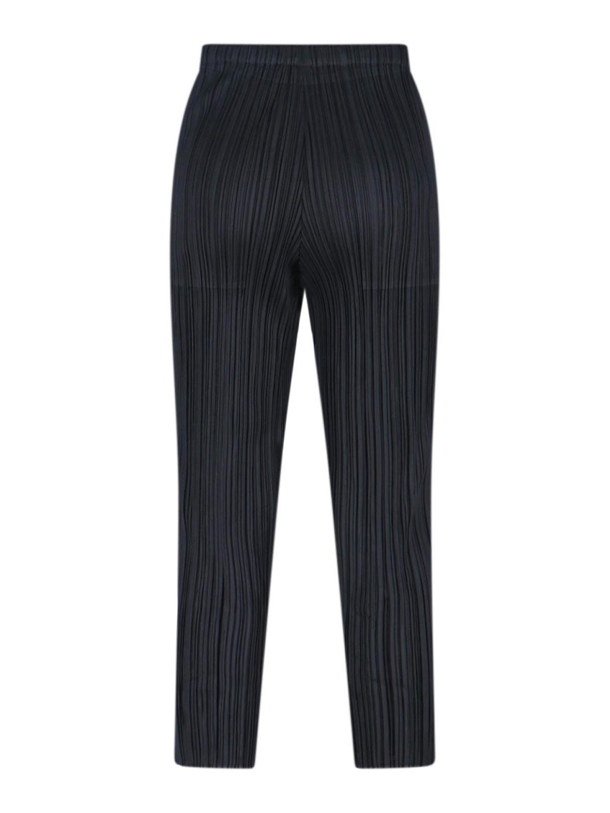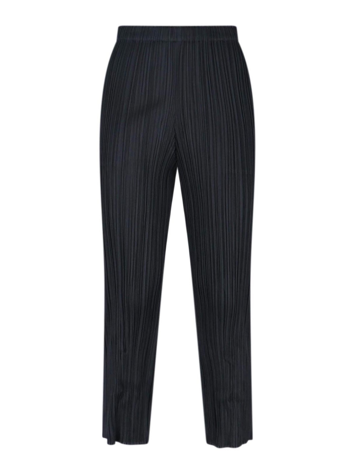 Pleats please pleated trousers, in black fabric, pleated workmanship, elasticated mid-waist, two side pockets, straight leg.