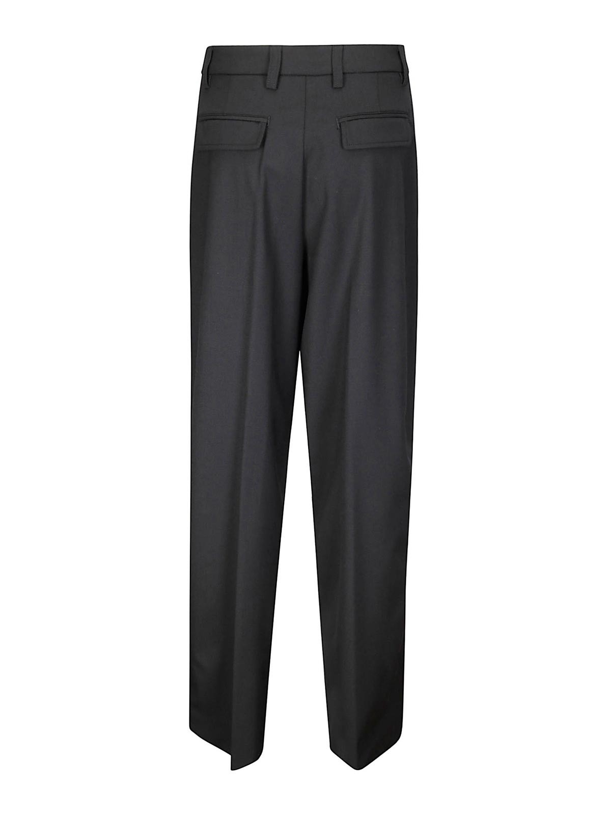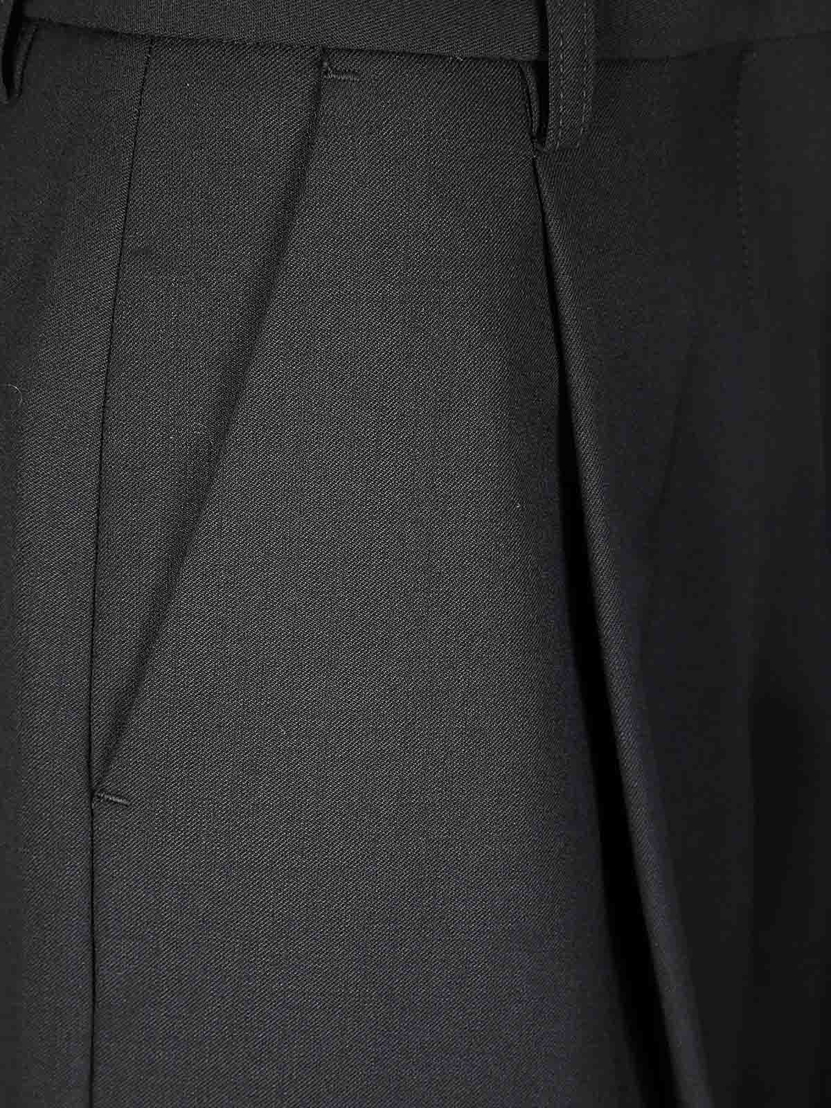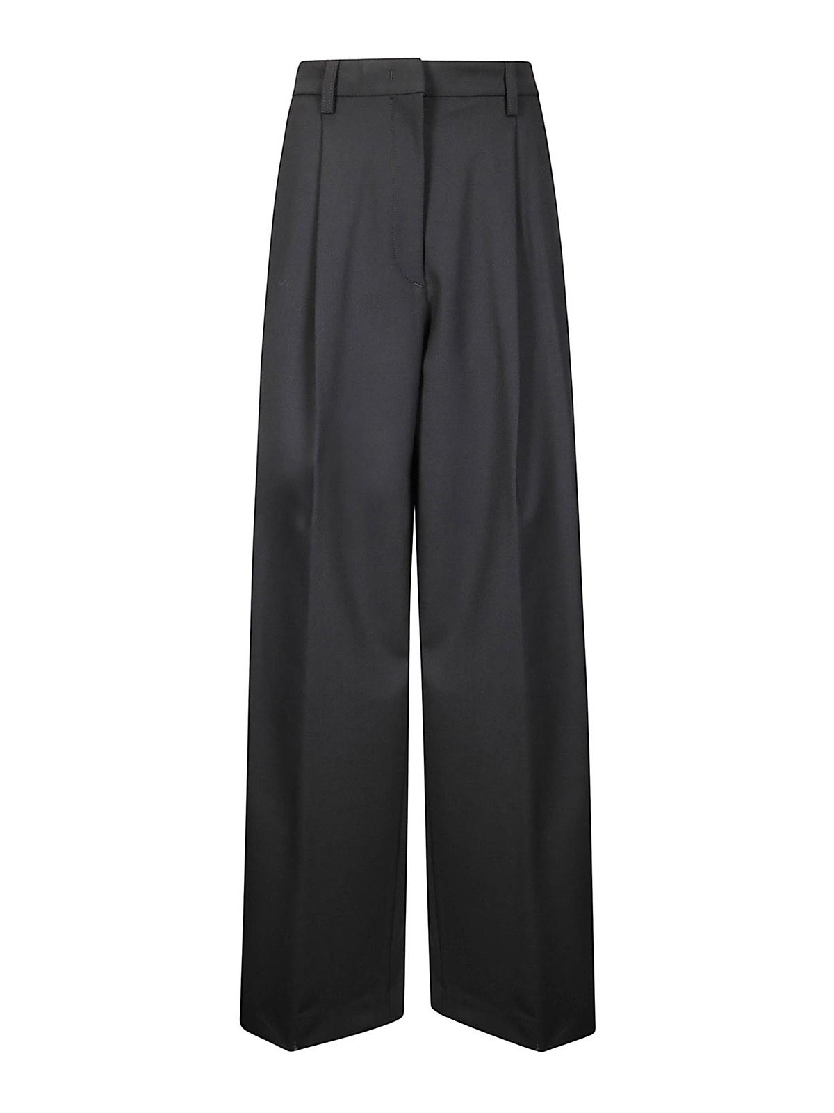 Trousers with front zip and hook closure, two pockets, wide leg with dart and pleat, loose fit.