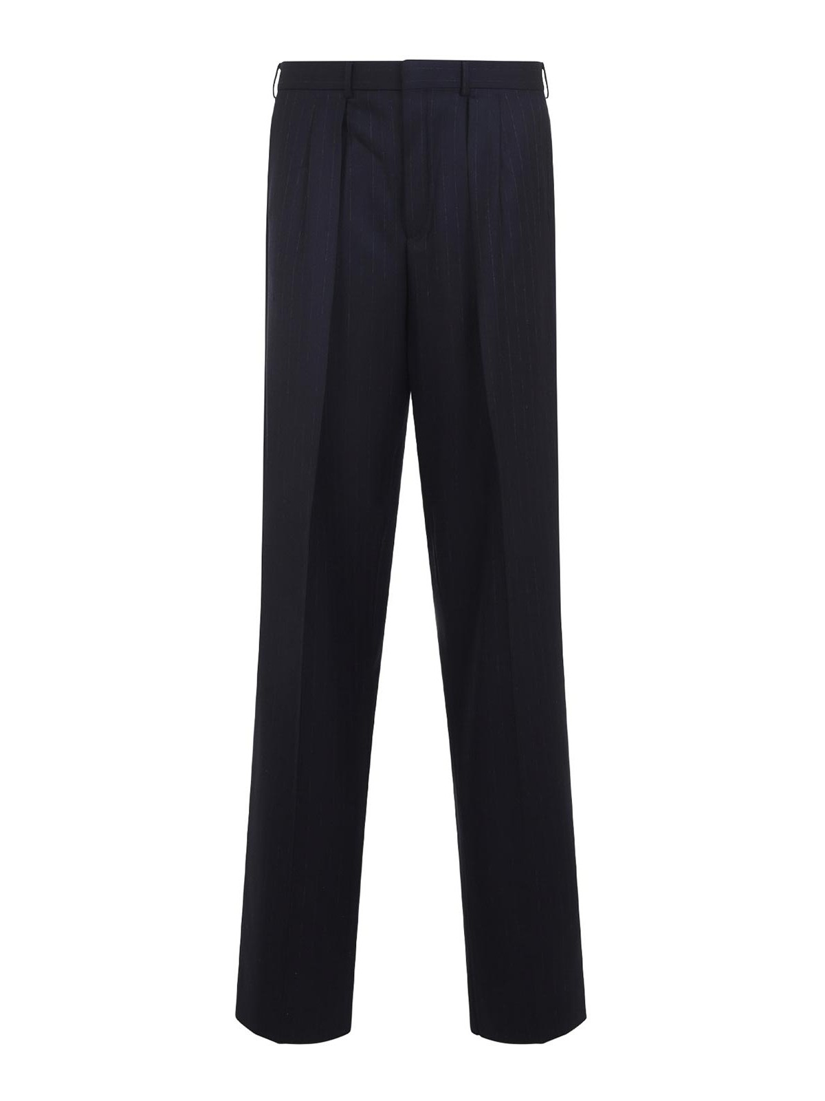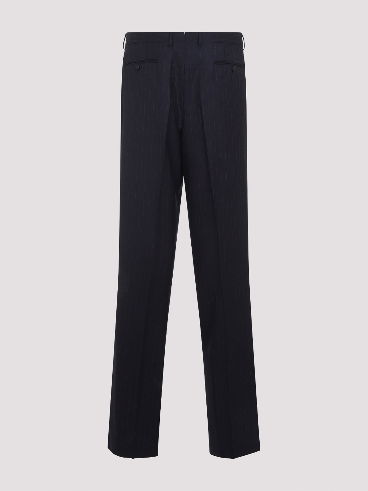 Tom ford navy blue pants pure navy, blue pants concealing zipped and hooked belt loops side pockets back slit buttoned pockets pleated straight hem pinstriped