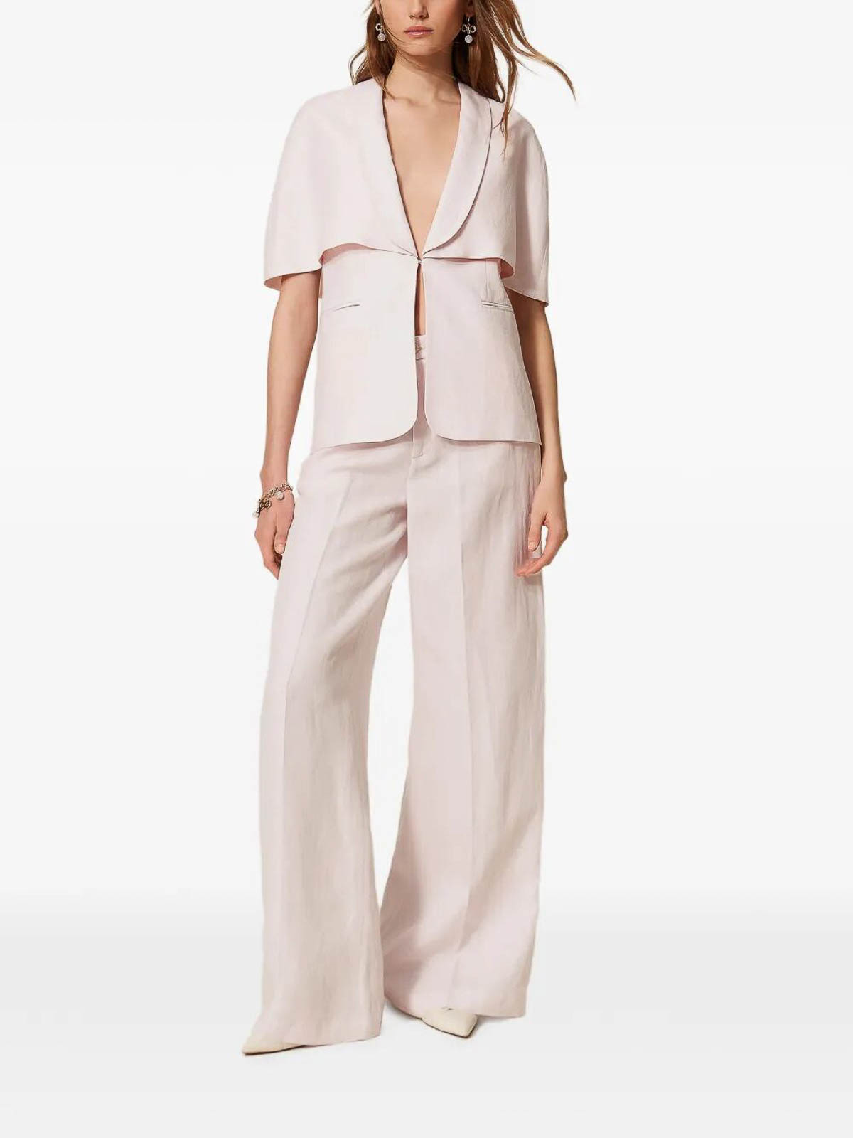 Twinset trousers with a feminine and modern cut, made of soft and pleasant to the touch fabric. The Pink Sand color adds a delicate and sophisticated touch, perfect for the spring and summer seasons.