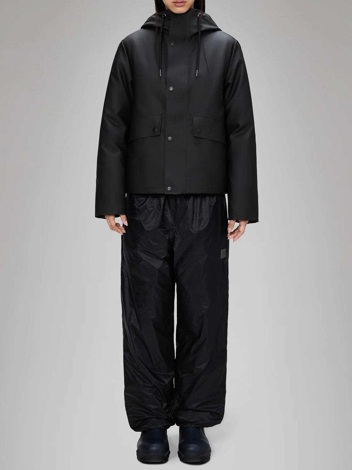 The nome short w parka w3t3 from rains is a garment with a modern and functional aesthetic, ideal for those who like a practical look without sacrificing style