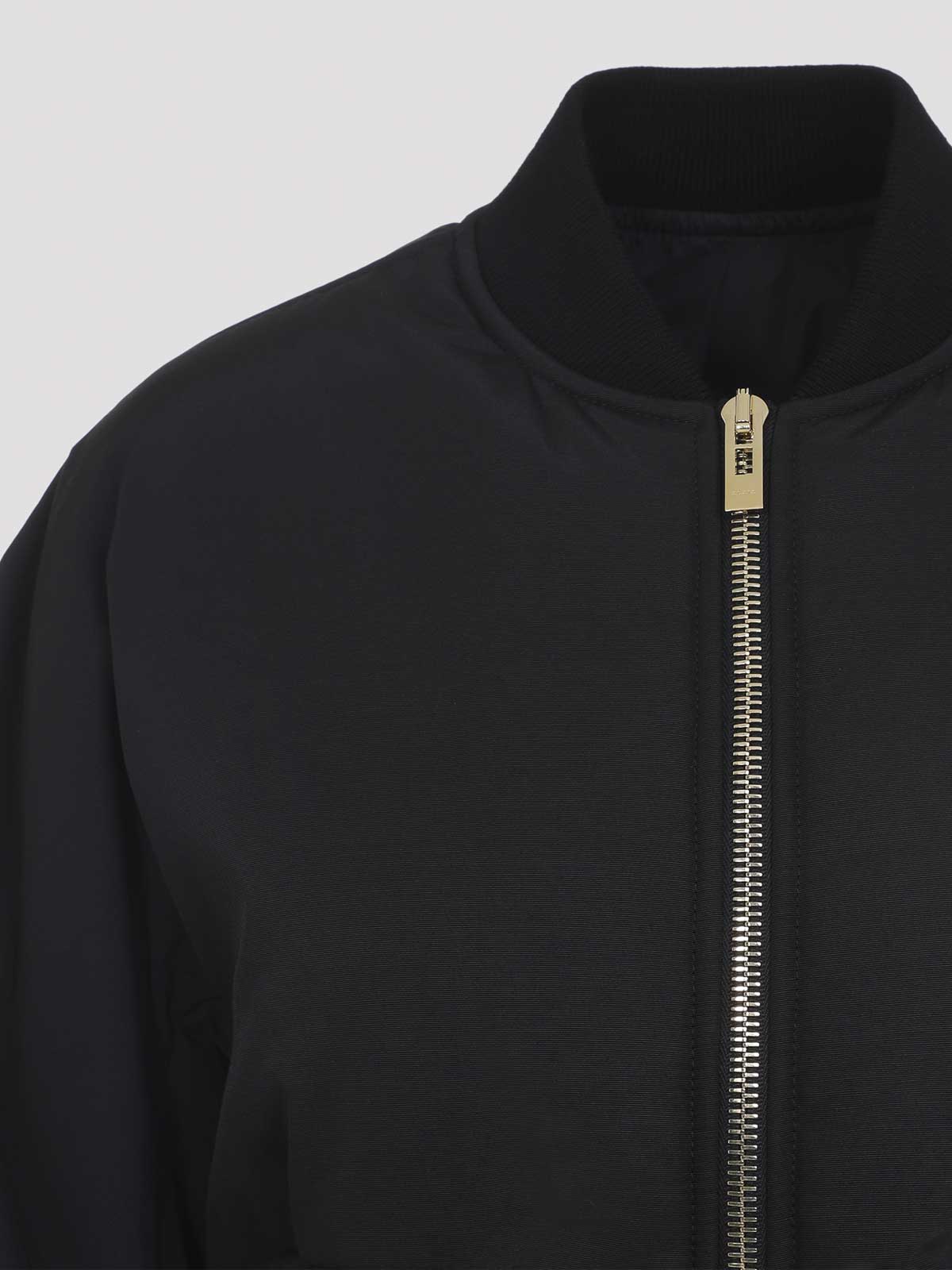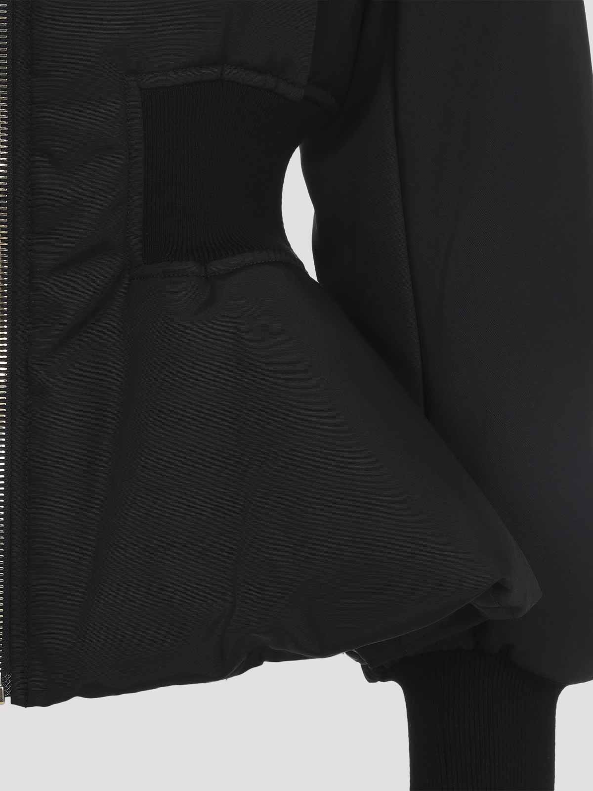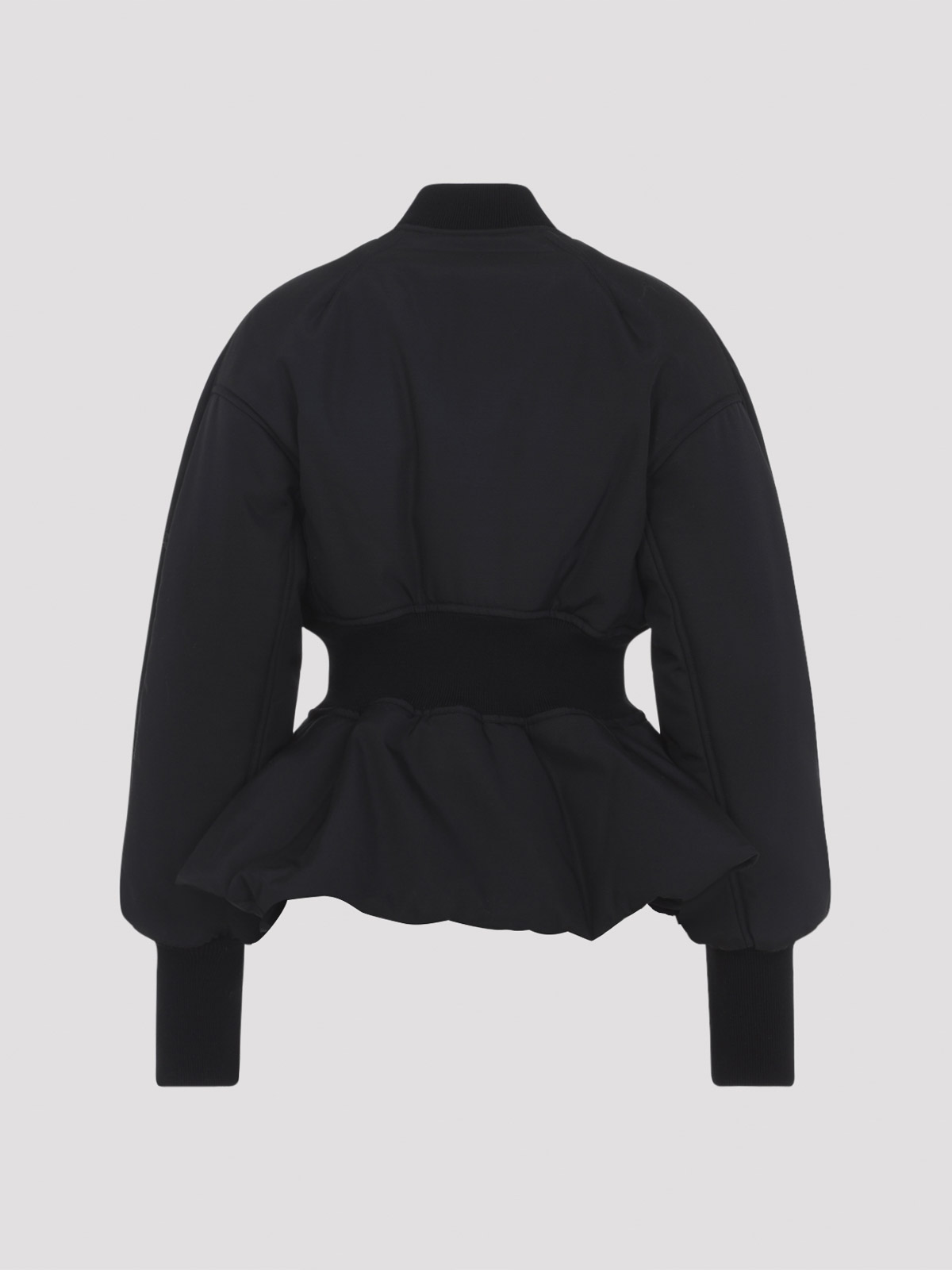 Alaa peplum black polyamide jacket. bomber jacket inspired design, crafted from tech fabric, it features a round neckline, a two-way front zip fastening, dropped shoulders and long sleeves, an elastic ribbed panel at the waist, a peplum detail that enhances the hem, and wool-ribbed edges.
