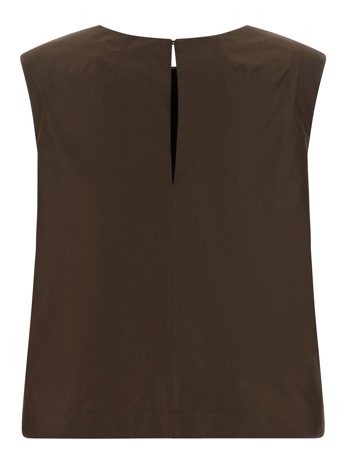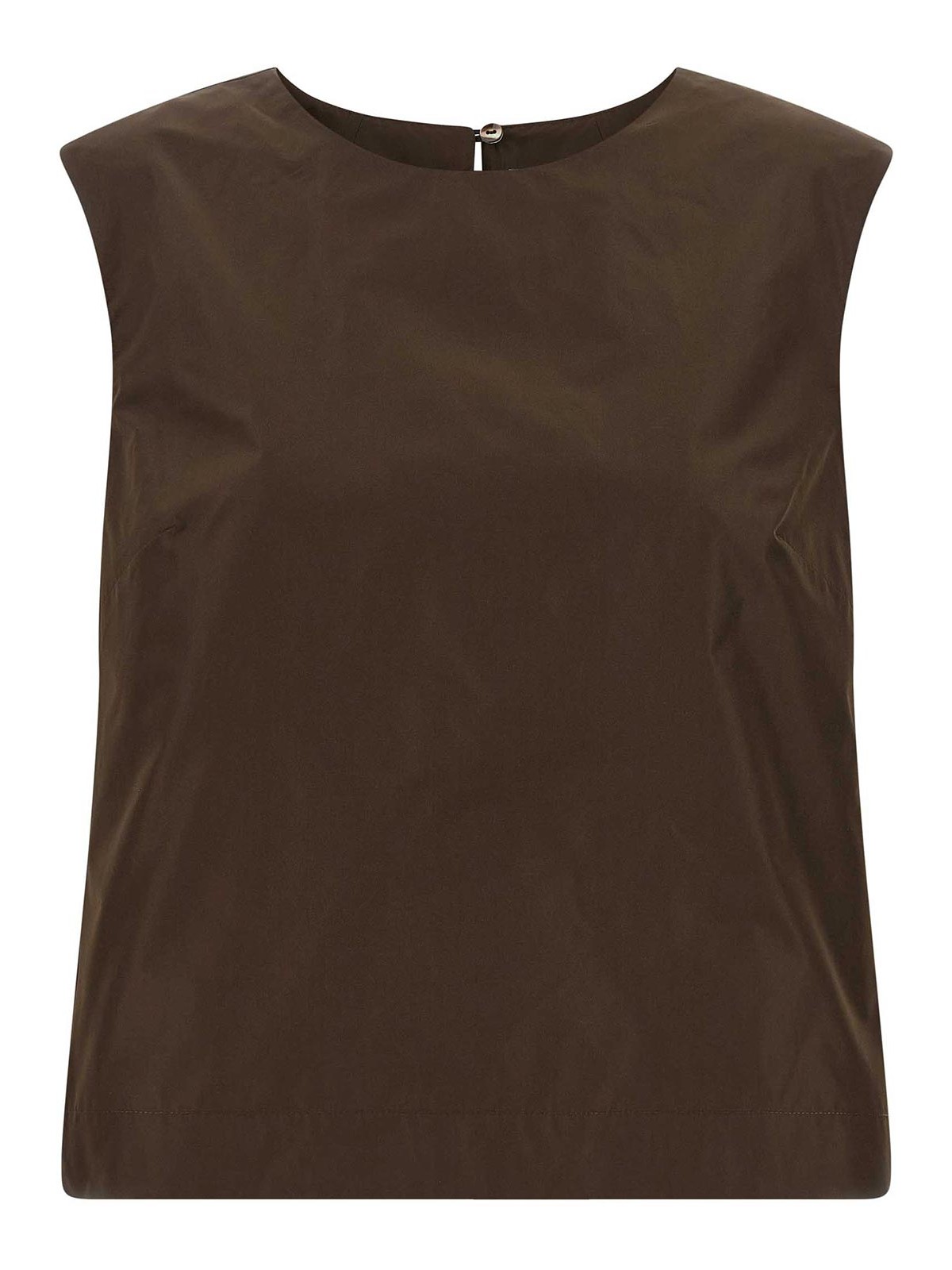 pimpy26' taffeta top with round neckline with back button closure and teardrop cut-out detail.