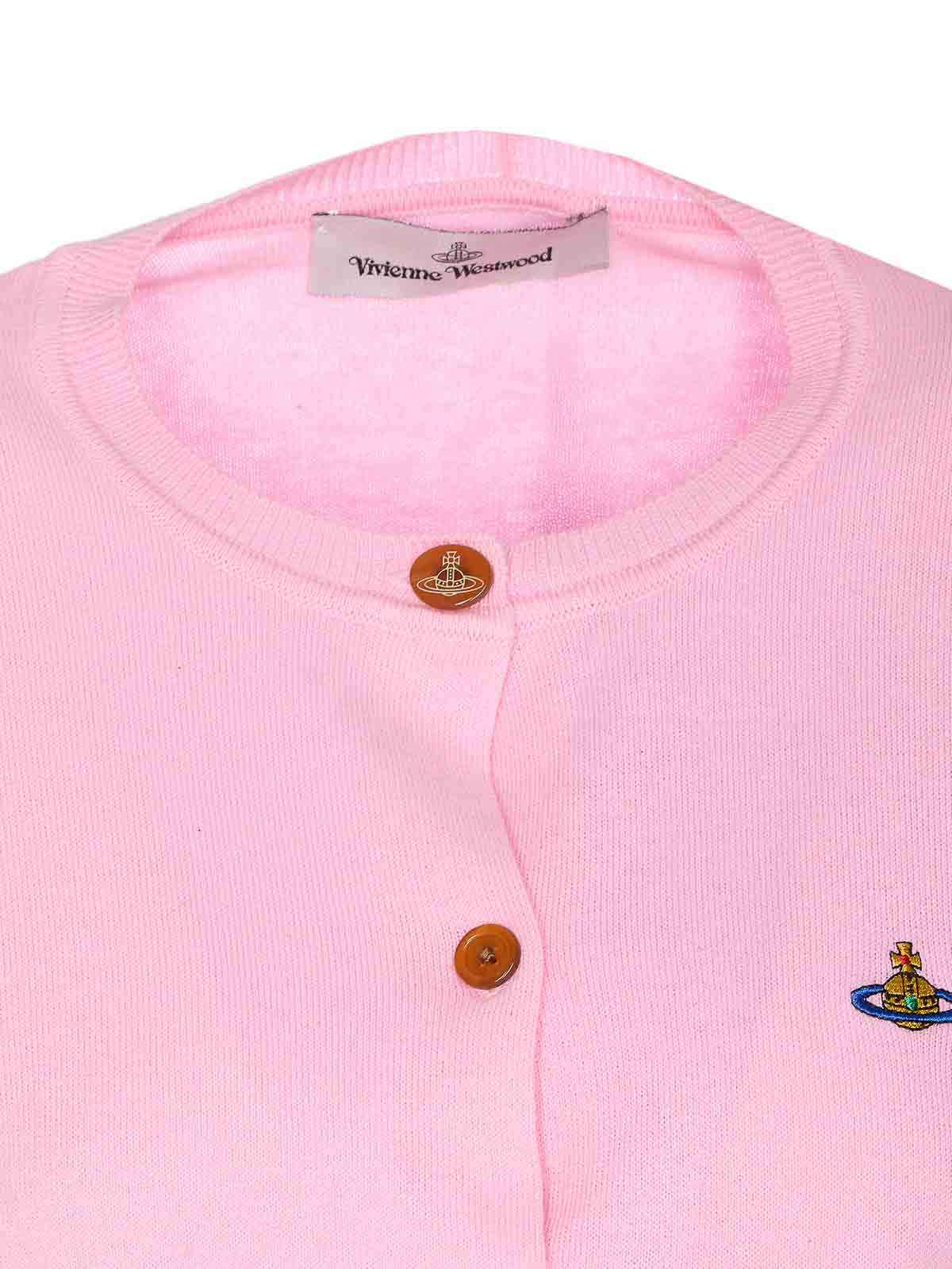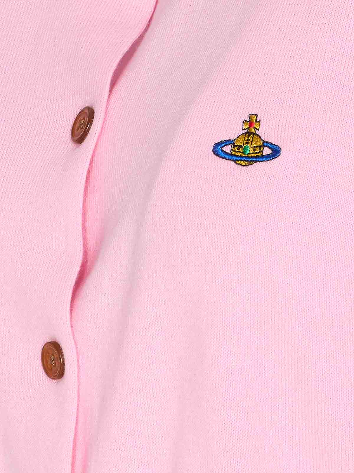 Vivienne westwood pink bea cardigan with frontal buttons closure, long sleeves, crewneck, embroidered orb logo on the front