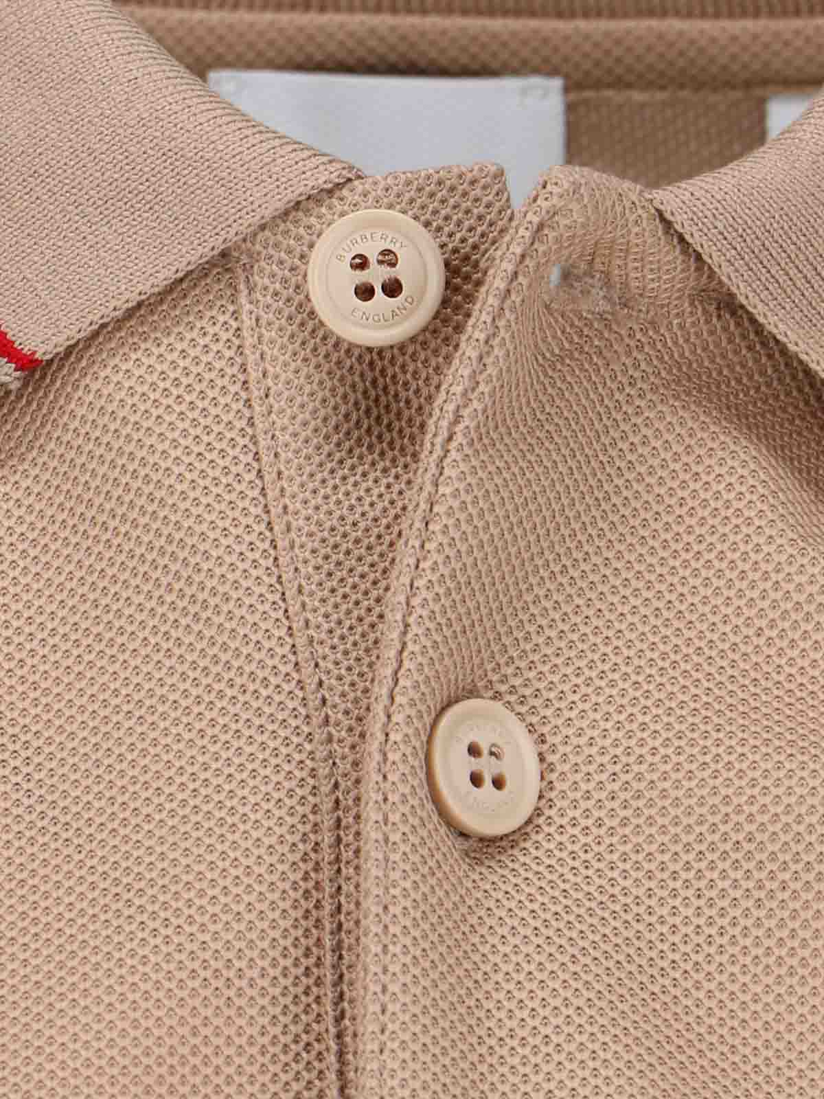 Burberry logo polo shirt in beige cotton classic collar red and black stripes front buttons logo chest tone on tone short sleeves side vents straight hem