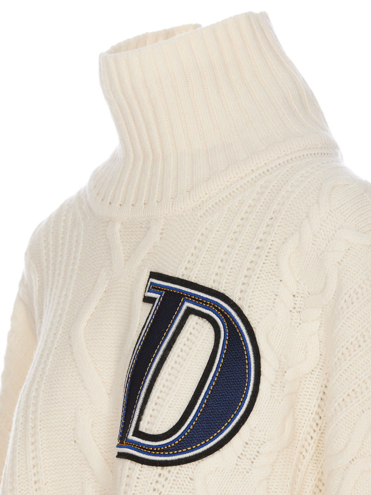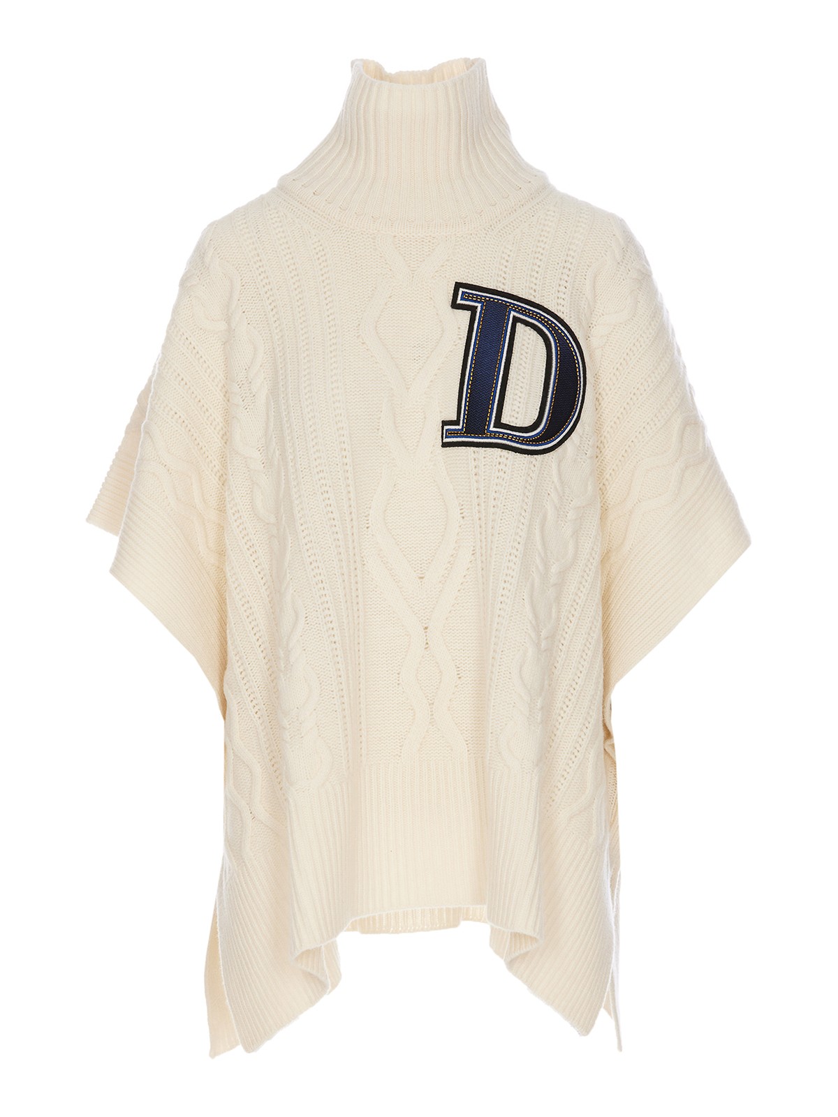 Dondup white poncho frontal patch detail knitted model high neck lateral split detail sleeveless overszed model