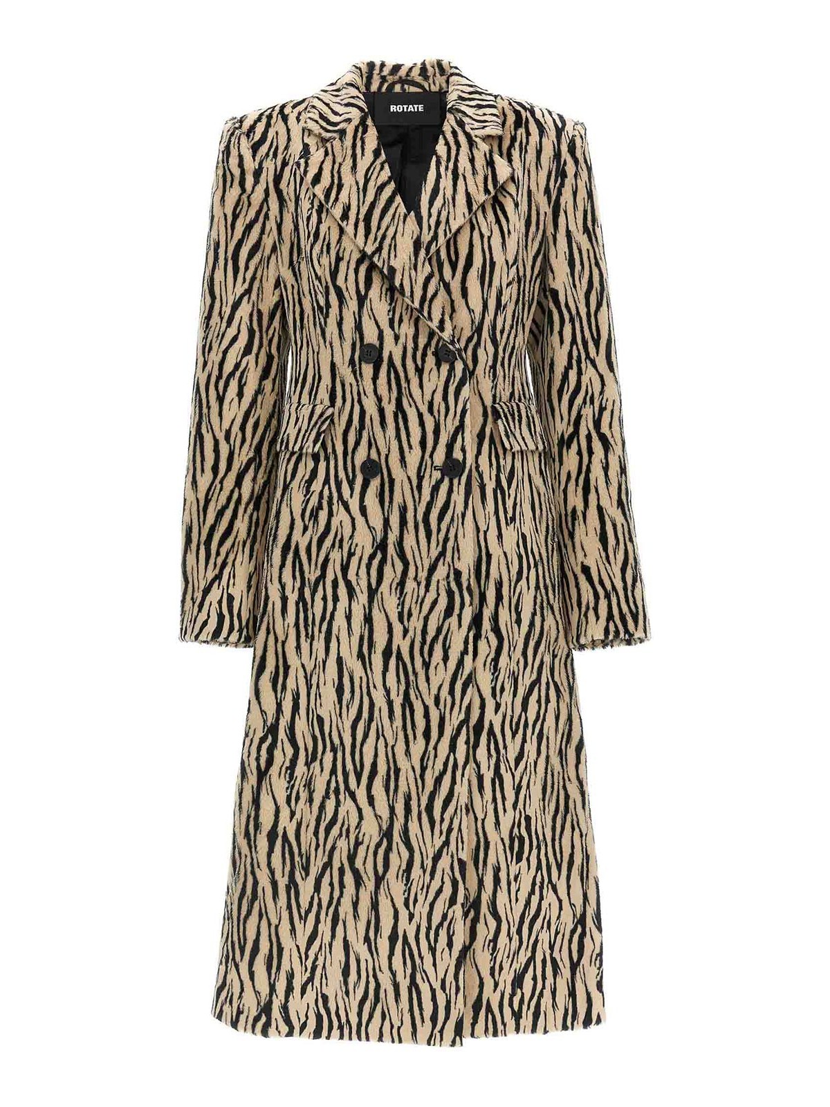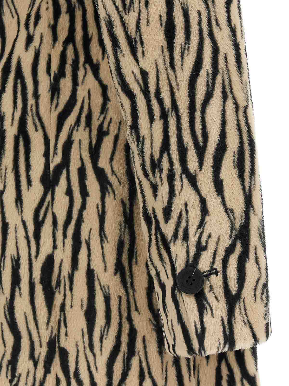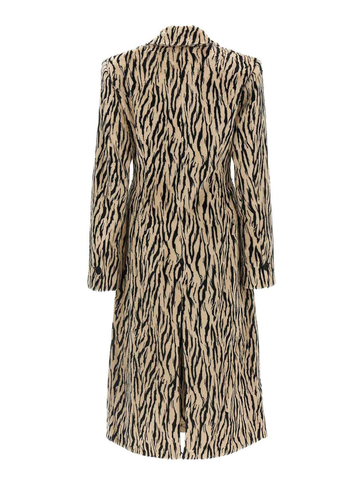 printed faux fur' coat in animal-print fur-effect fabric with double-breasted style with front button closure, flap pockets, mirror lapels, structured shoulder strap, long sleeves, back vent, lining.