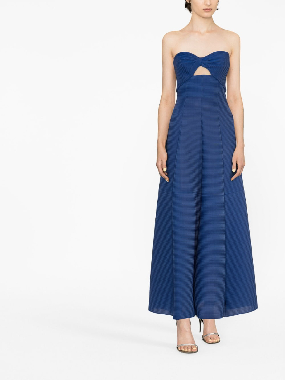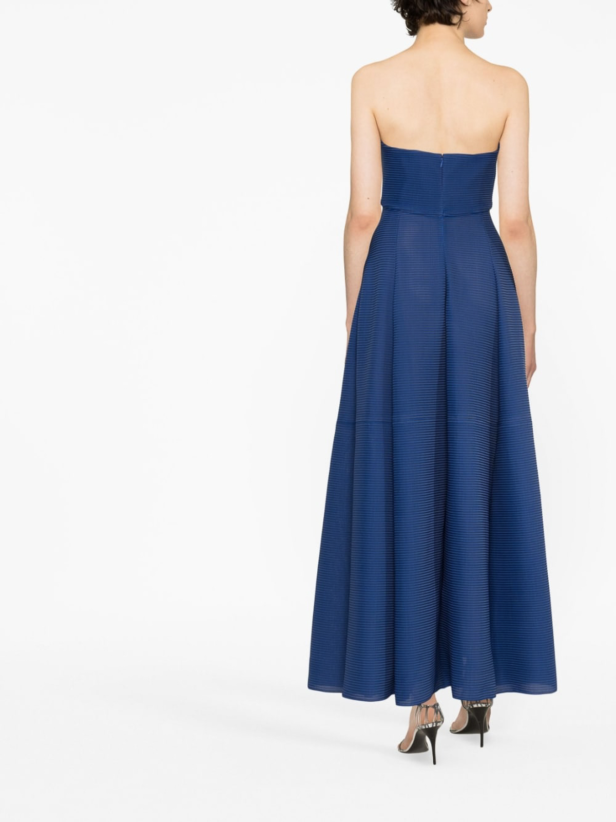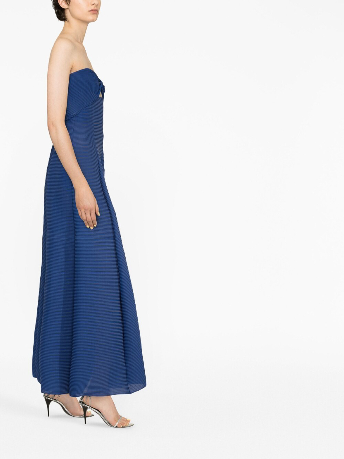 Sweetheart-neck strapless dress from emporio armani featuring blue fine ribbed cut-out detailing sweetheart neck strapless and a-line skirt