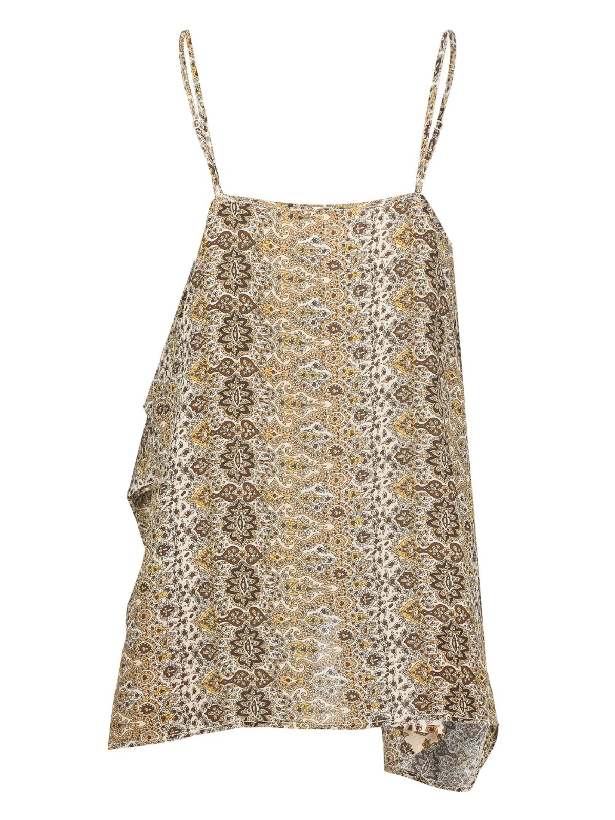 Paisley-print slip top from gold hawk featuring beige silk paisley print square neck spaghetti straps and handkerchief hem