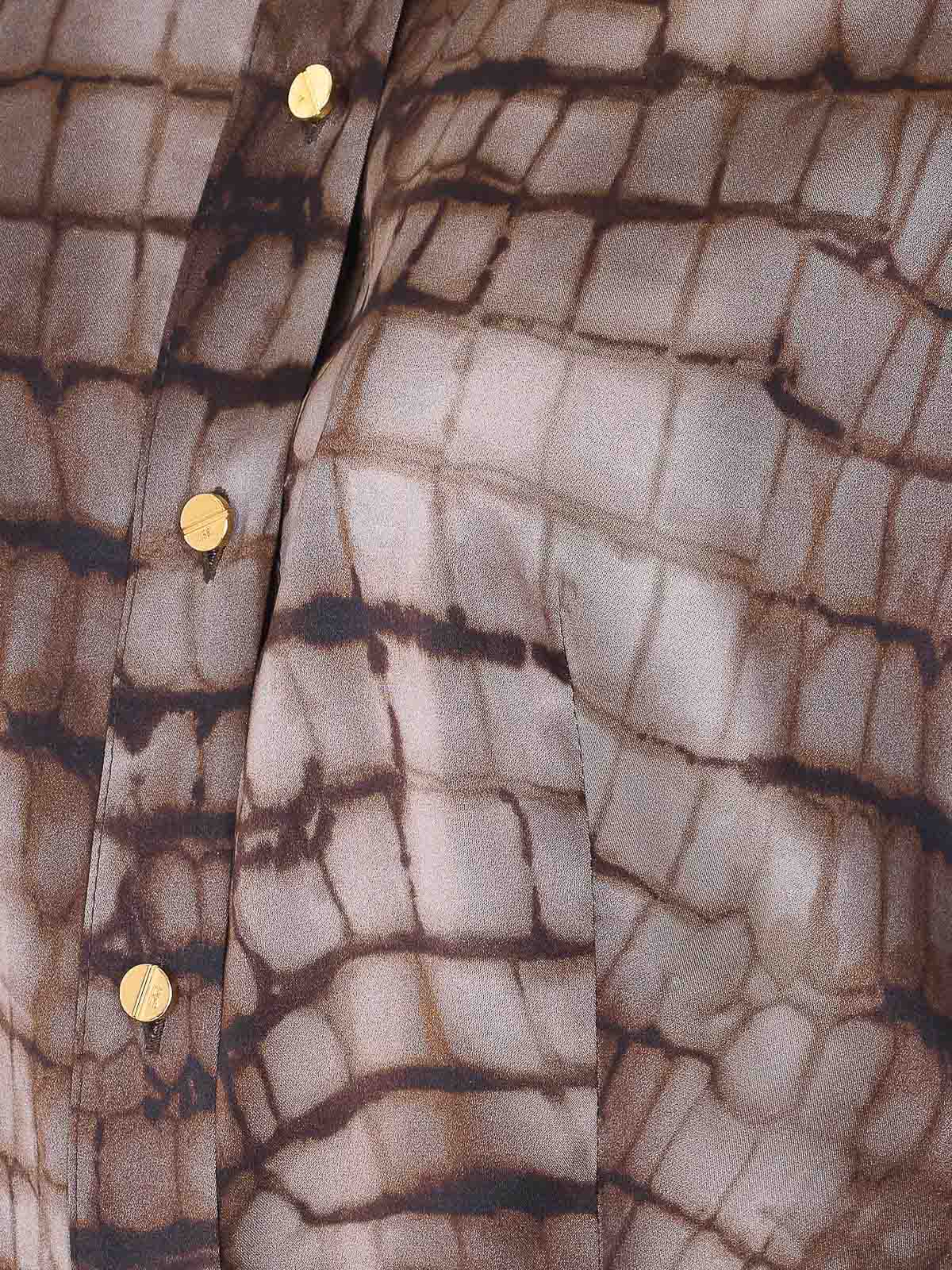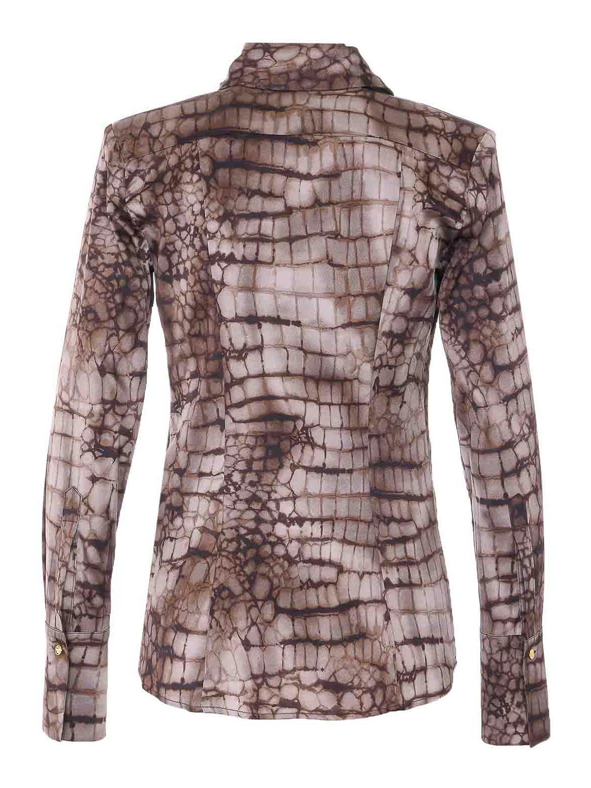 Elisabetta franchi brown shirt with frontal buttons closure, long sleeves, button on cuffs, phyton print, reifnorced shoulder, regular collar
