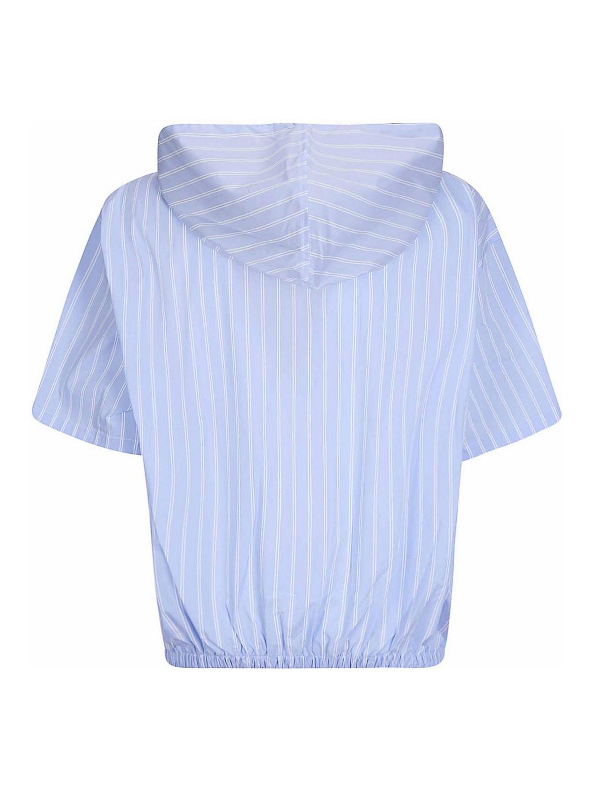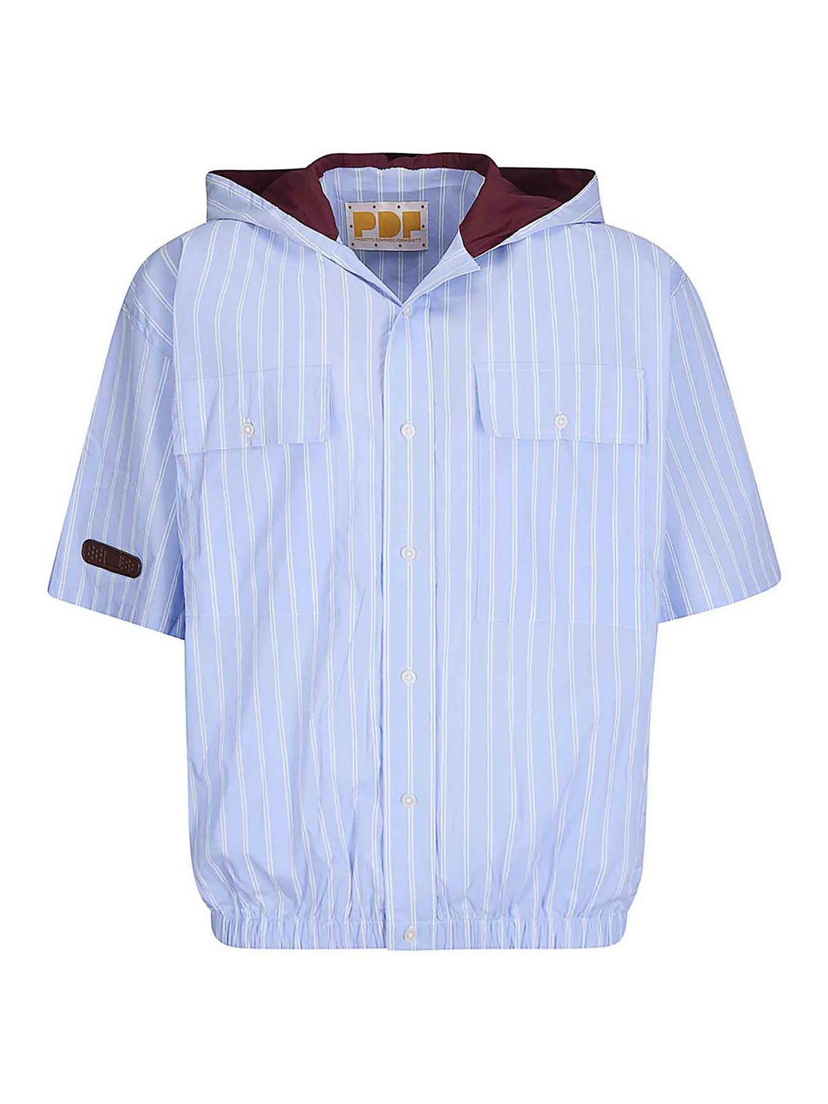 Hooded shirt with short sleeves, two flap pockets on the chest, oversized fit and elasticated hem.