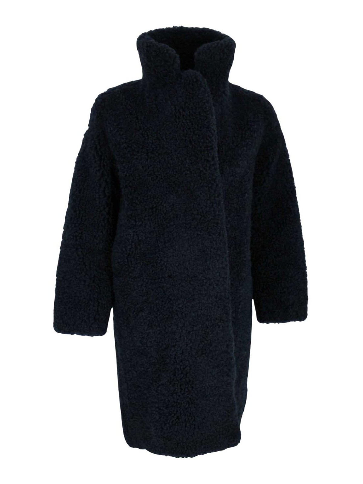Rrd coat wom jkt reversible faux fur coat with teddy effect inspired by the retro charm of the seventies the coat wom jkt reinterprets the classic teddy coat in a minimalist and contemporary key made of premium reversible faux fur it offers comfort and versatility thanks to the possibility of wearing it on both sides for an ever different equally refined style the soft line and the three-quarter length envelop the silhouette in a warm embrace perfect for facing the winter with elegance the hidden buttoning on the and the sides A borders on one of the two sides embellish the design with a sartorial touch. The black micro-injection RRD logo on the left adds the unmistakable hallmark of the brand. Reversible eco fur, teddy effect. Soft line and three-quarter length. Hidden front buttoning. A borders on one side. Warm, enveloping and comfortable.