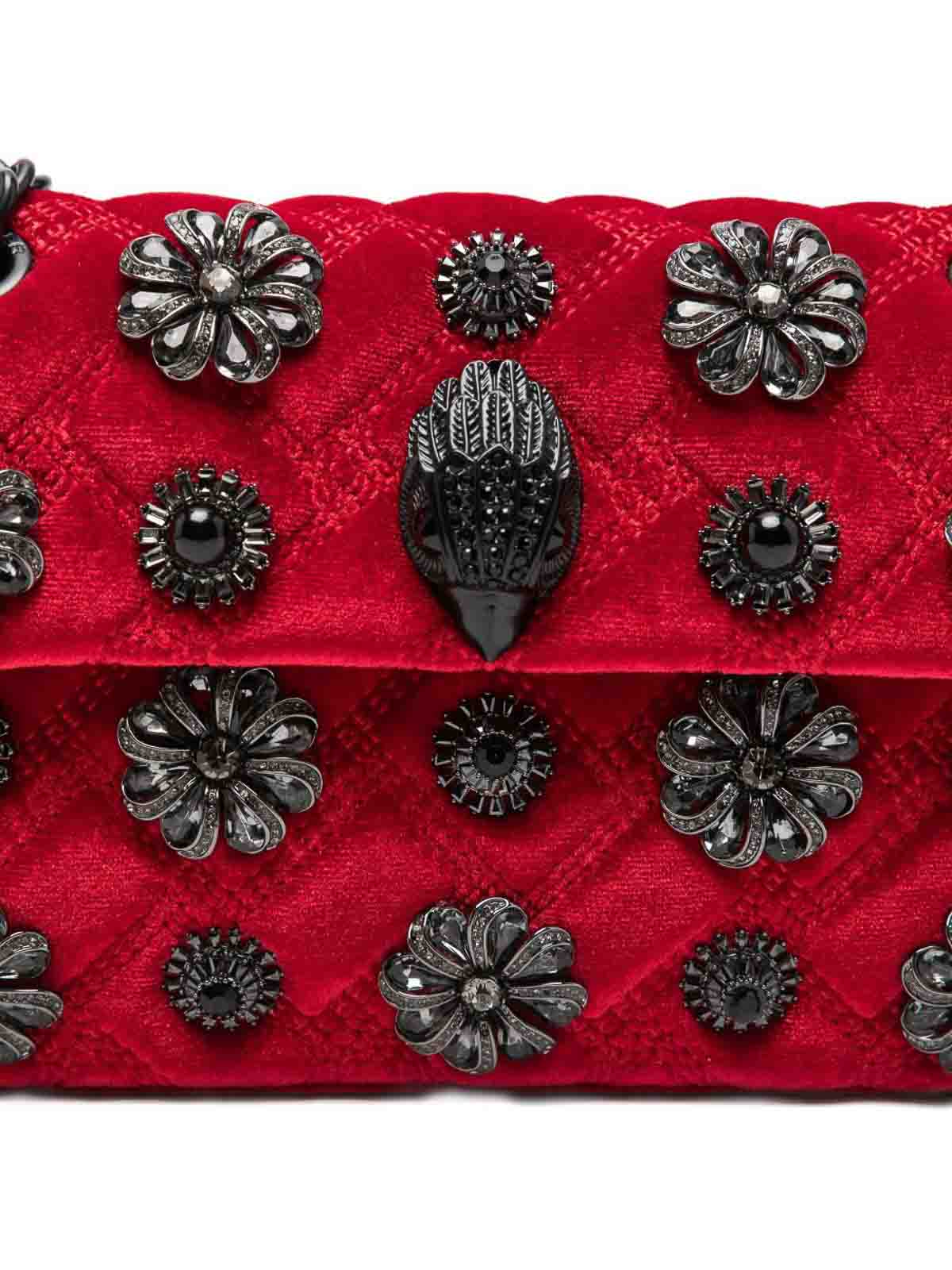 Red 'velvet mini kensin' bag by kurt geiger featuring floral appliqu chain-link shoulder strap quilted design and signature eagle head embellishment