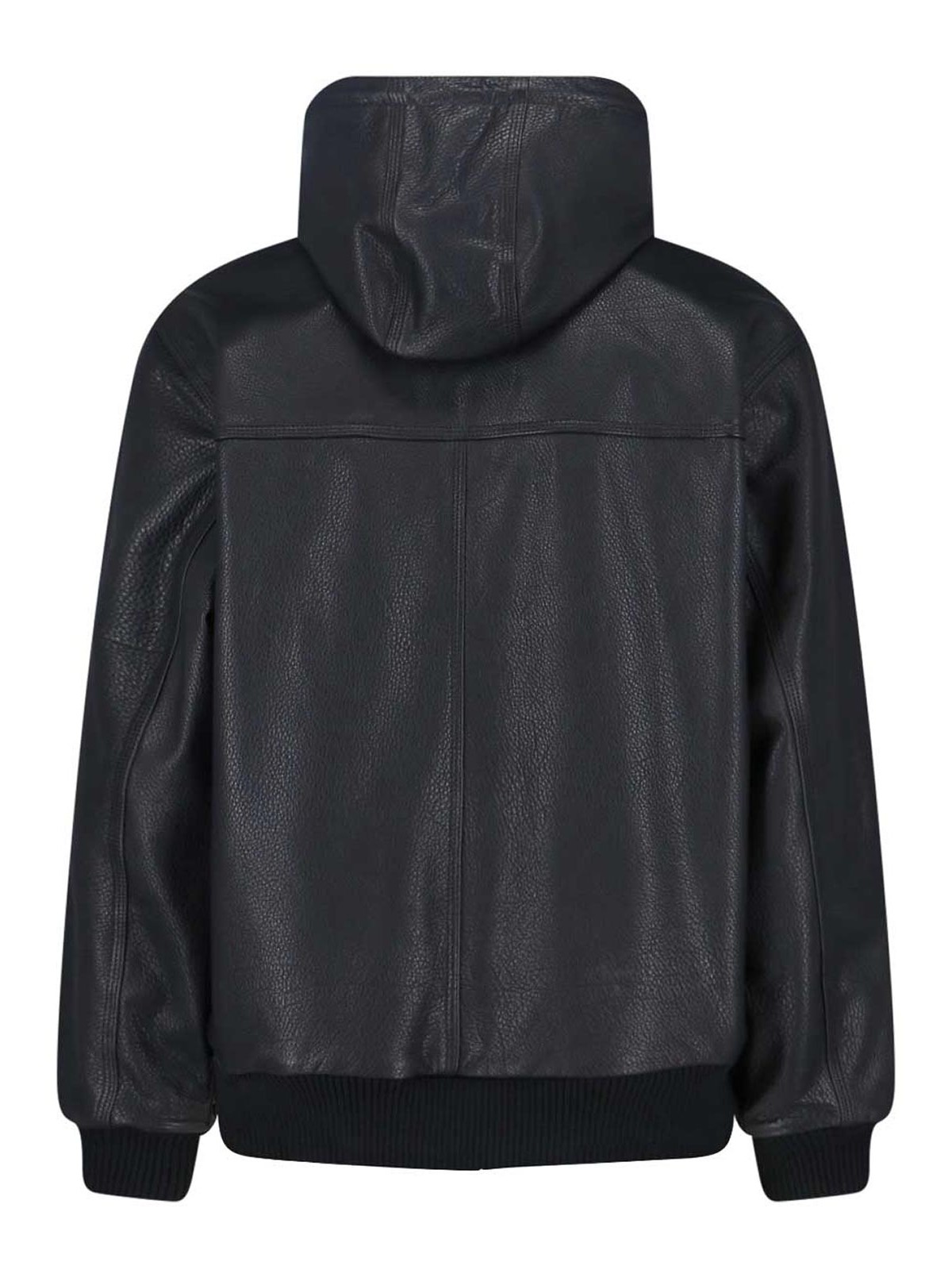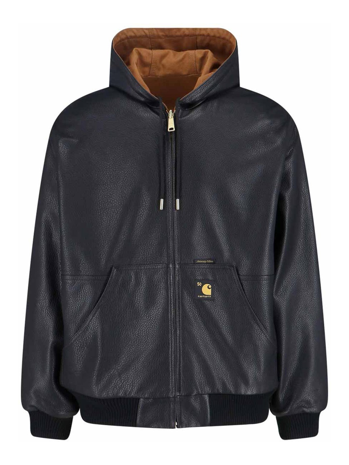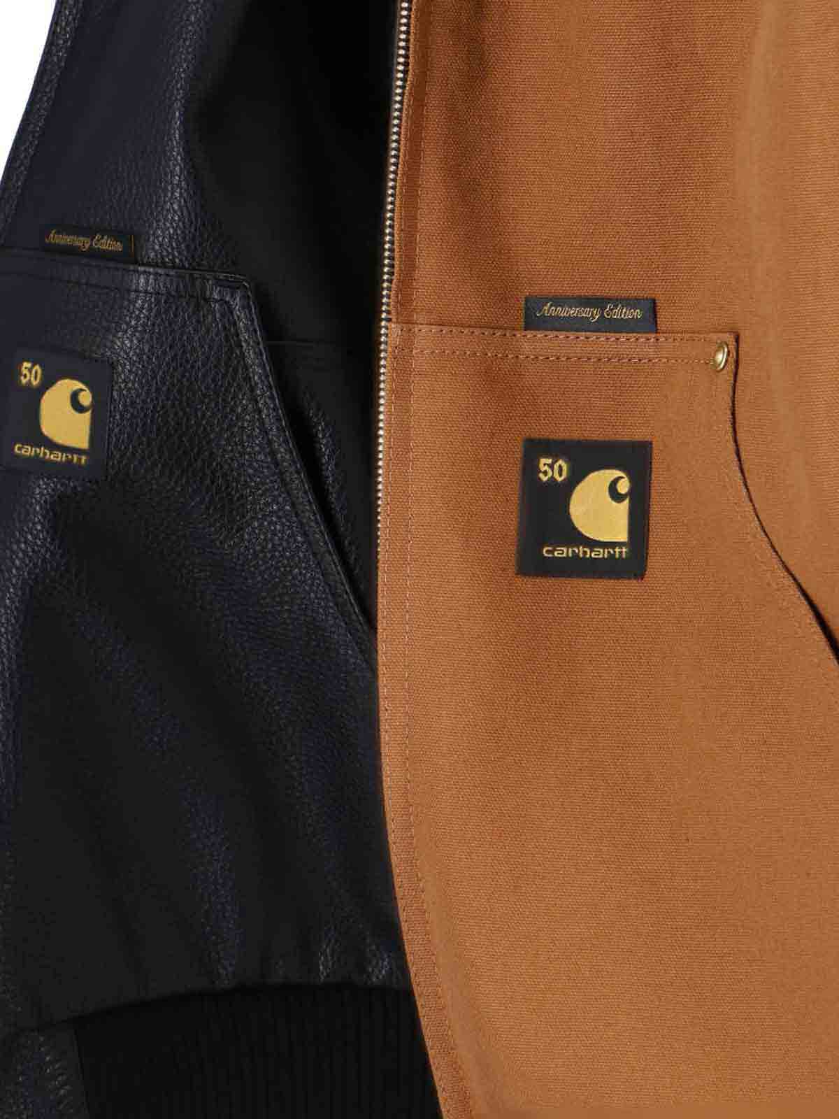 OG active jacket 50th anniversary Carhartt WIP jacket, in black calfskin on one side, in brown Dearborn recycled cotton on the other, drawstring hood, zip closure, two side pockets, embroidered logo labels on the front, contrasting maxi embroidery detail on the back, elasticated ribbed finishes, straight hem.