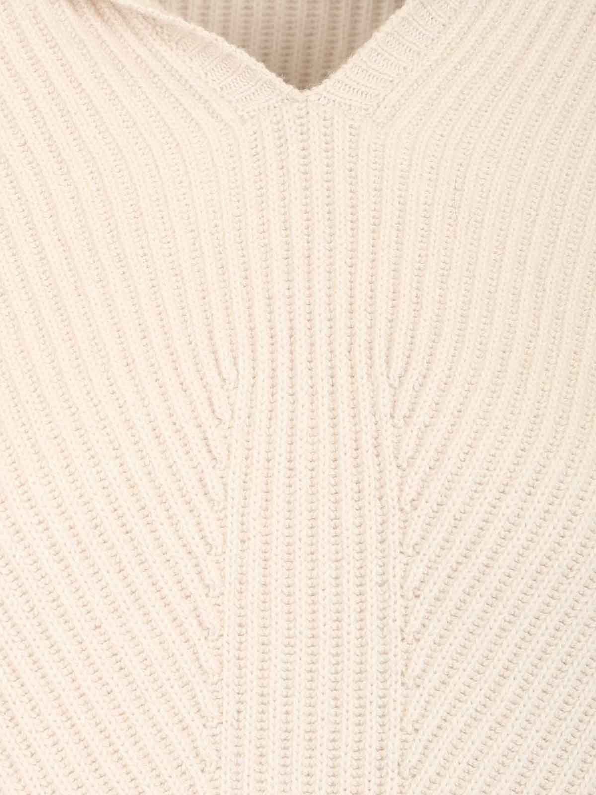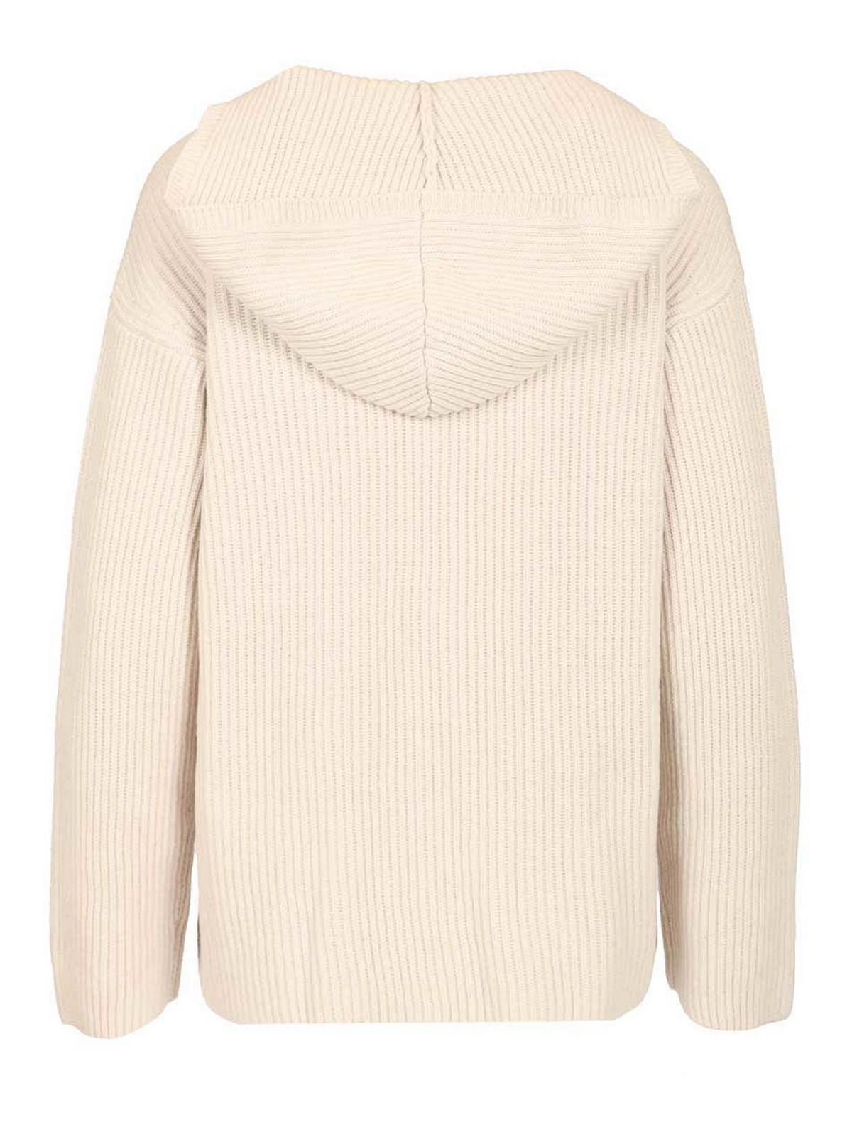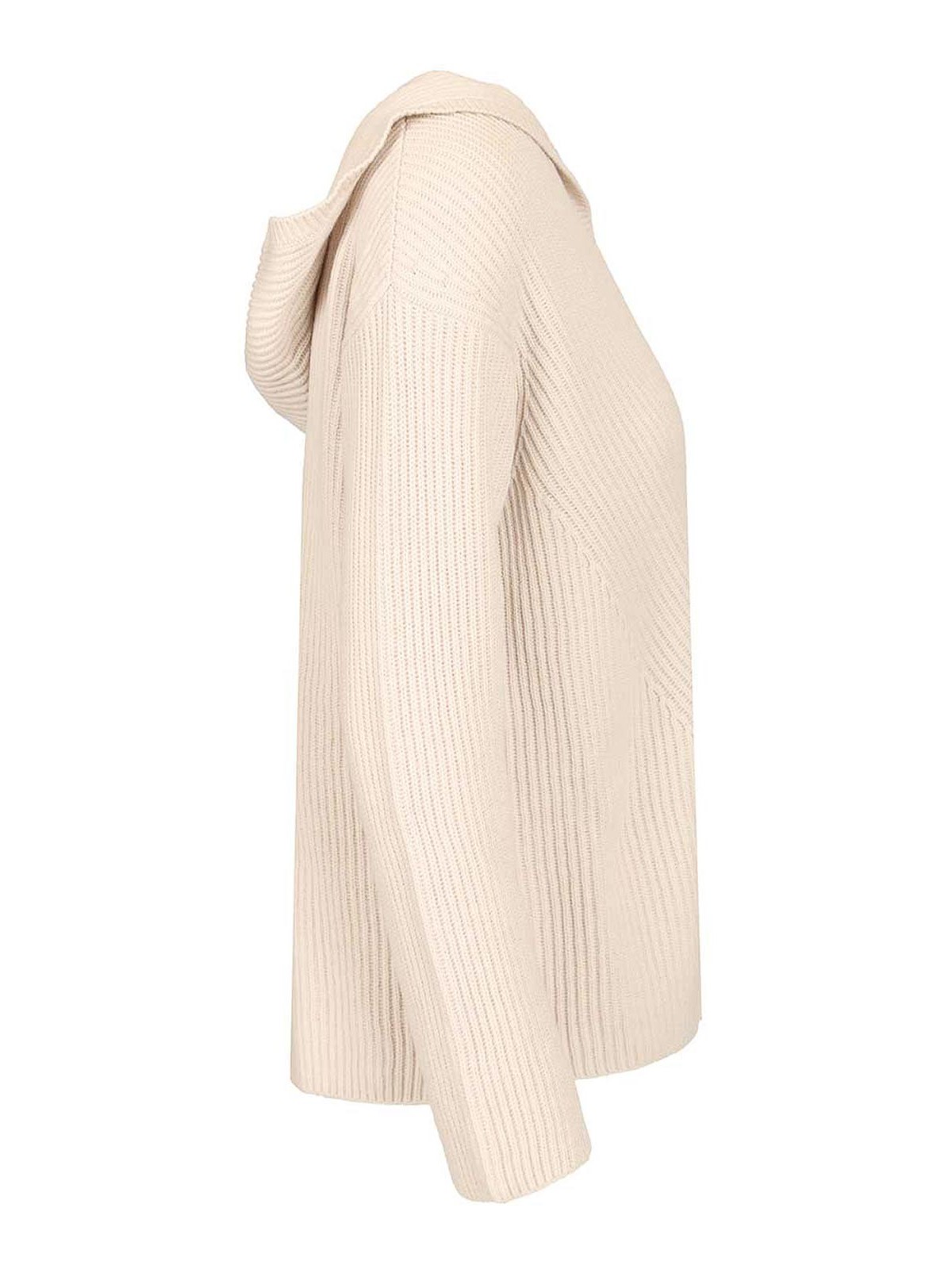 Max mara's ribbed sweatshirt with hood wide v, neck long low, set sleeves and straight hem